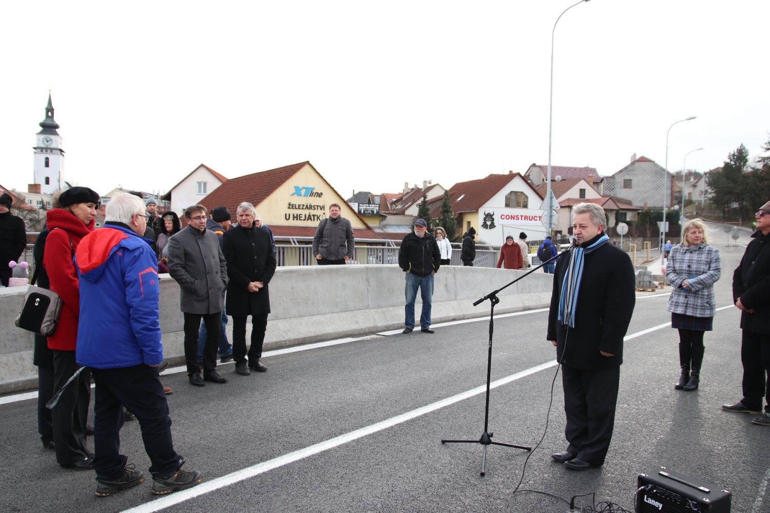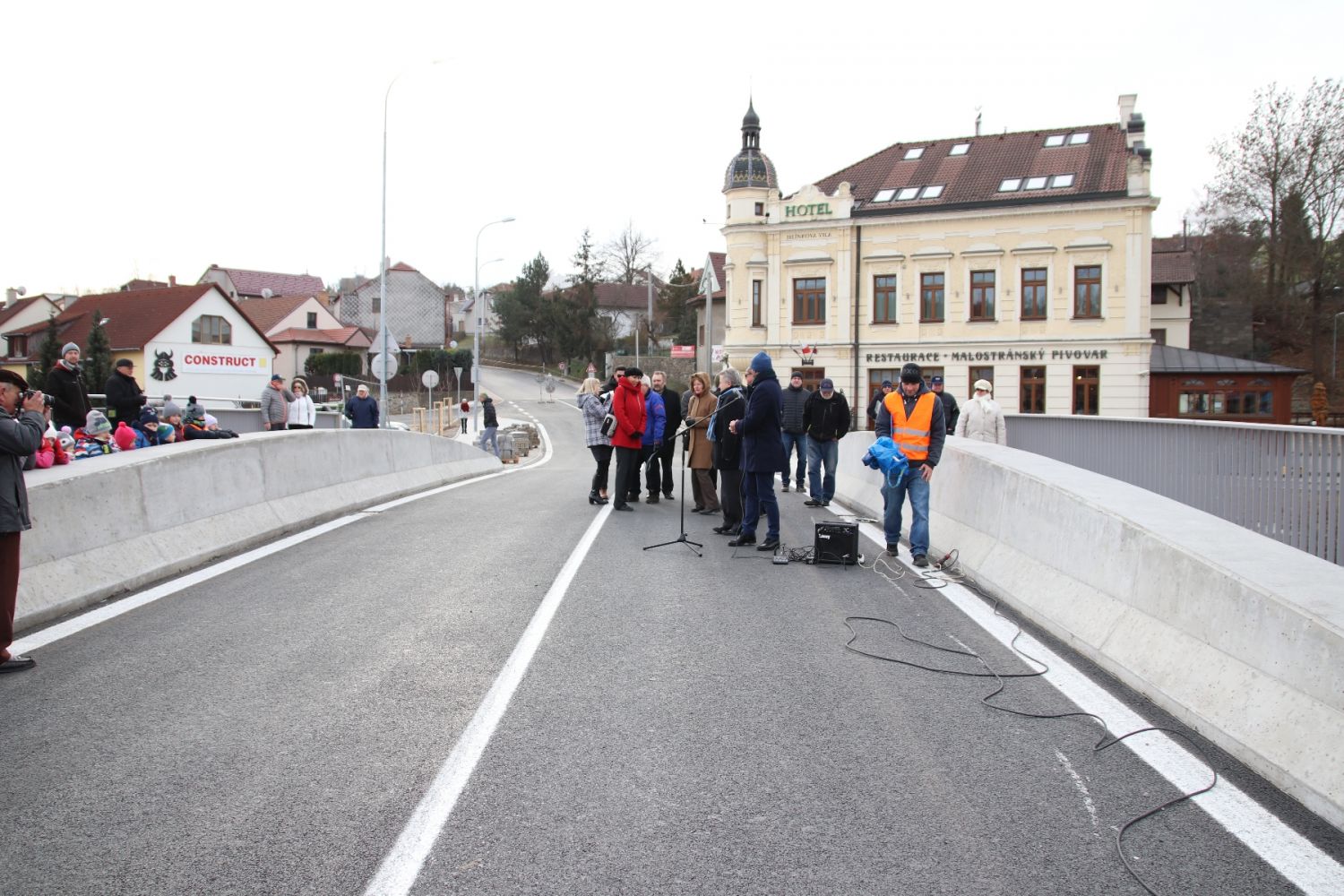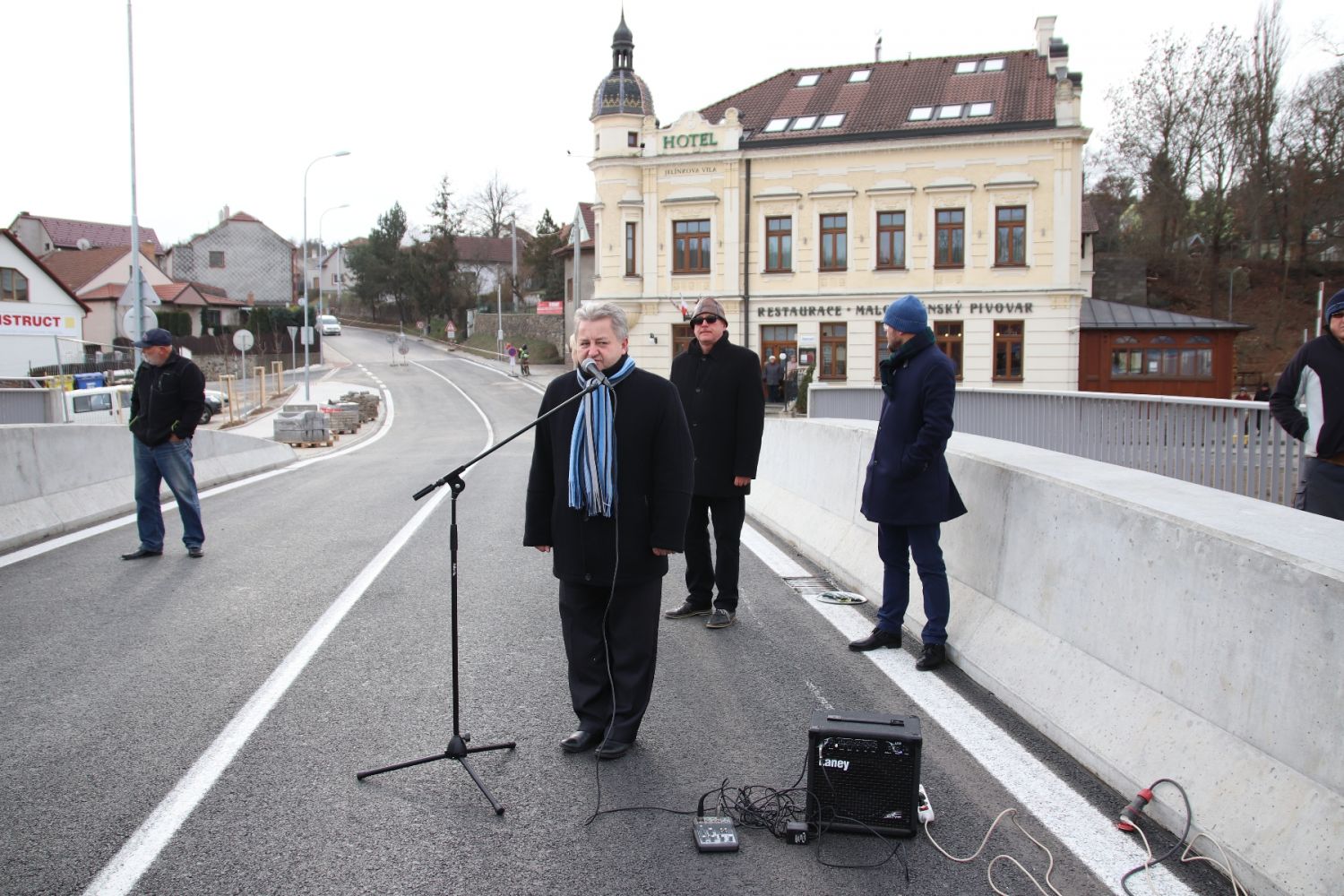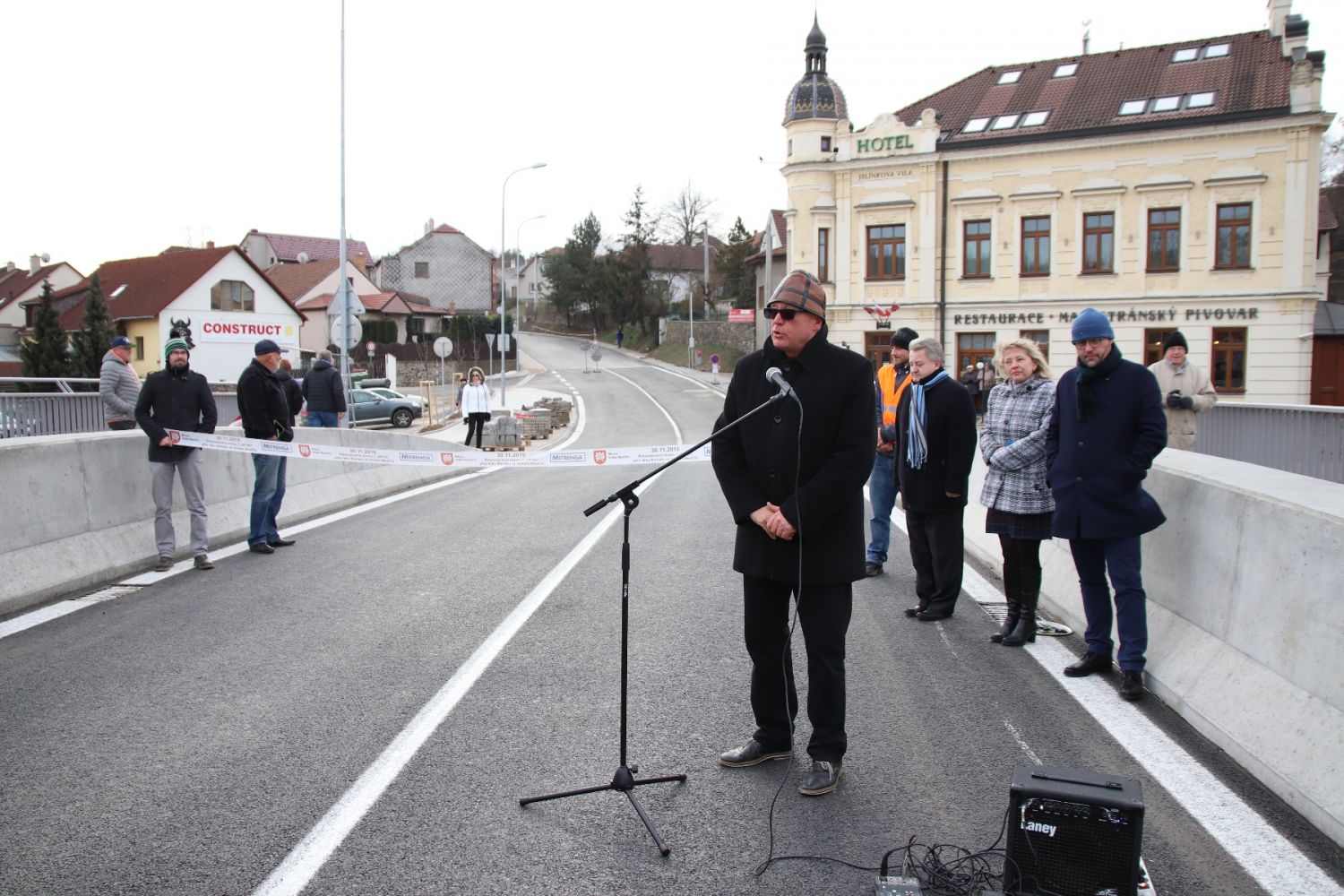 „Otevíráme most. Je to něco nového, co se ve městě zase podařilo vybudovat,“ uvedl starosta Josef Komínek s tím, že peníze na projektovou dokumentaci byly schváleny zastupitelstvem města už v roce 2016, v únoru letošního roku pak i na samotnou stavbu. Ta byla zahájena v červnu letošního roku. Zprovoznění mostu dnes hodinu po poledni podstatně uleví dopravě ve Velkém Meziříčí. "Věřím, že otevřením tohoto mostu se nám uvolní Novosady a cesta přes město," řekl starosta a poděkoval občanům města za trpělivost a popřál novému mostu, aby dlouho sloužil veřejnosti a všem řidičům. "Doufejme, že most bude sloužit hodně roků, jako ten předešlý, a že nás přežije," připojil se s přáním Rostislav Mitrenga za zhotovitele stavby.