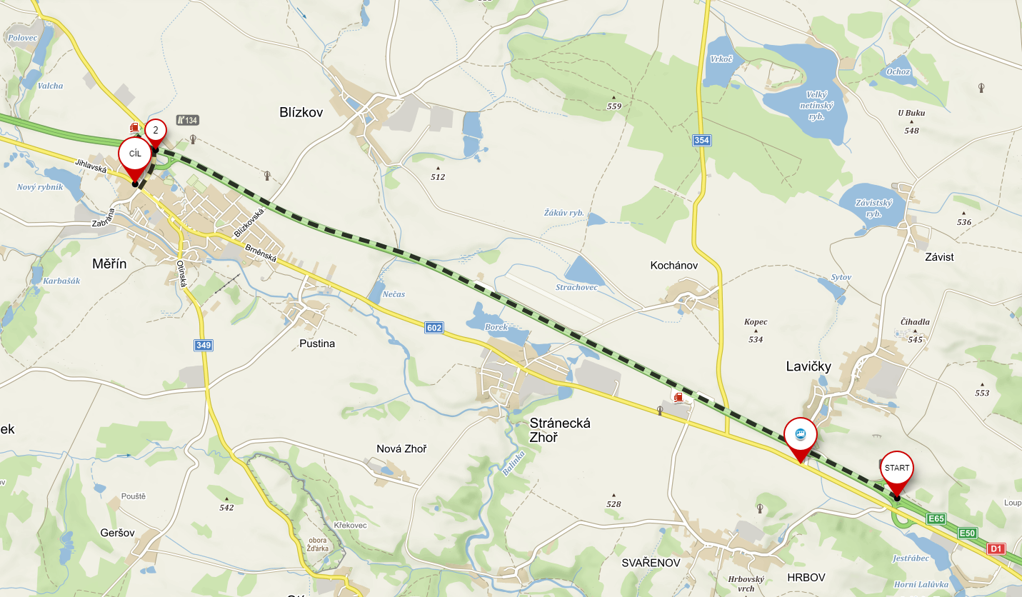 • II/602, II/354 Netín, III/35433 Blízkov, II/602 Měřín (ostatní vozidla).