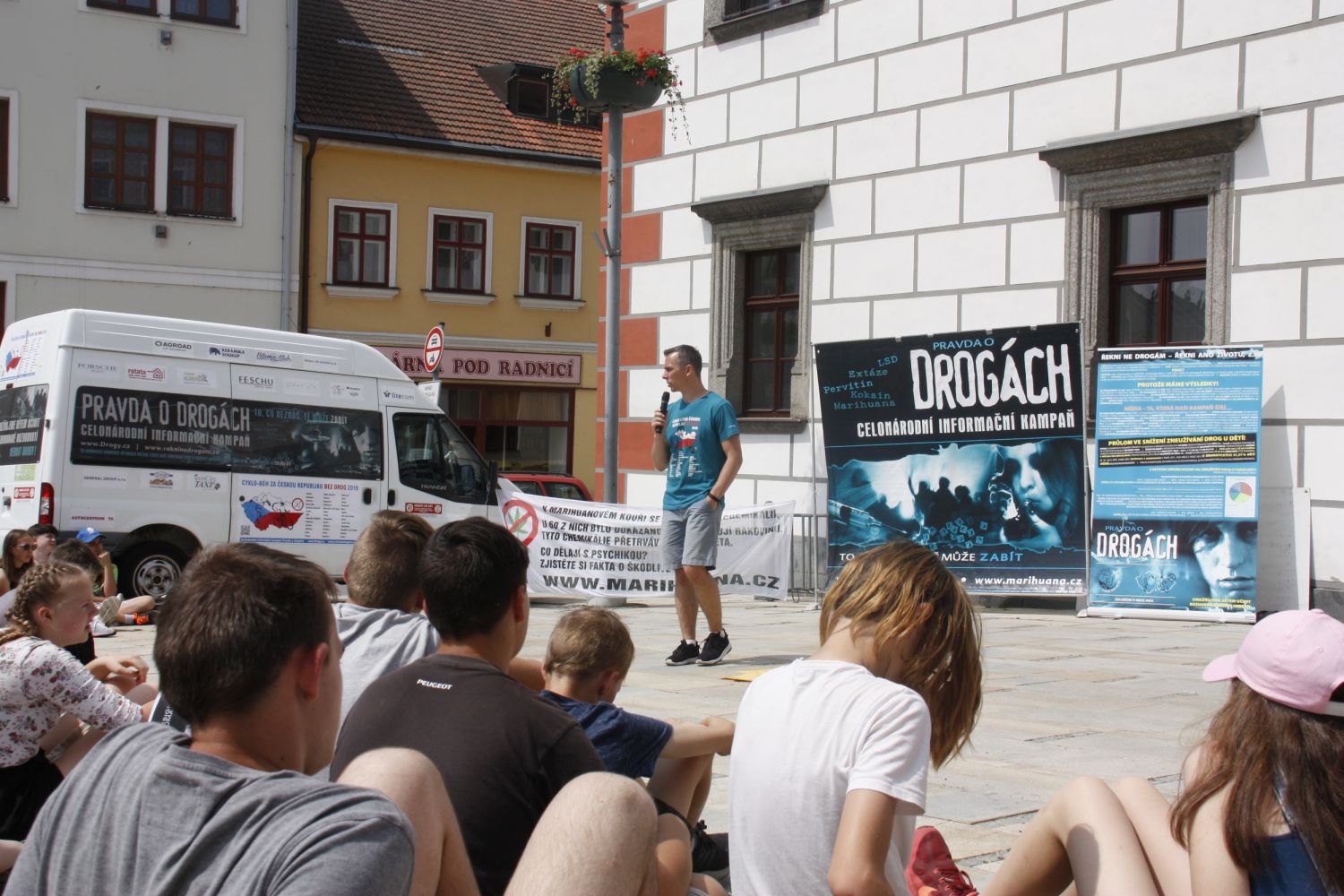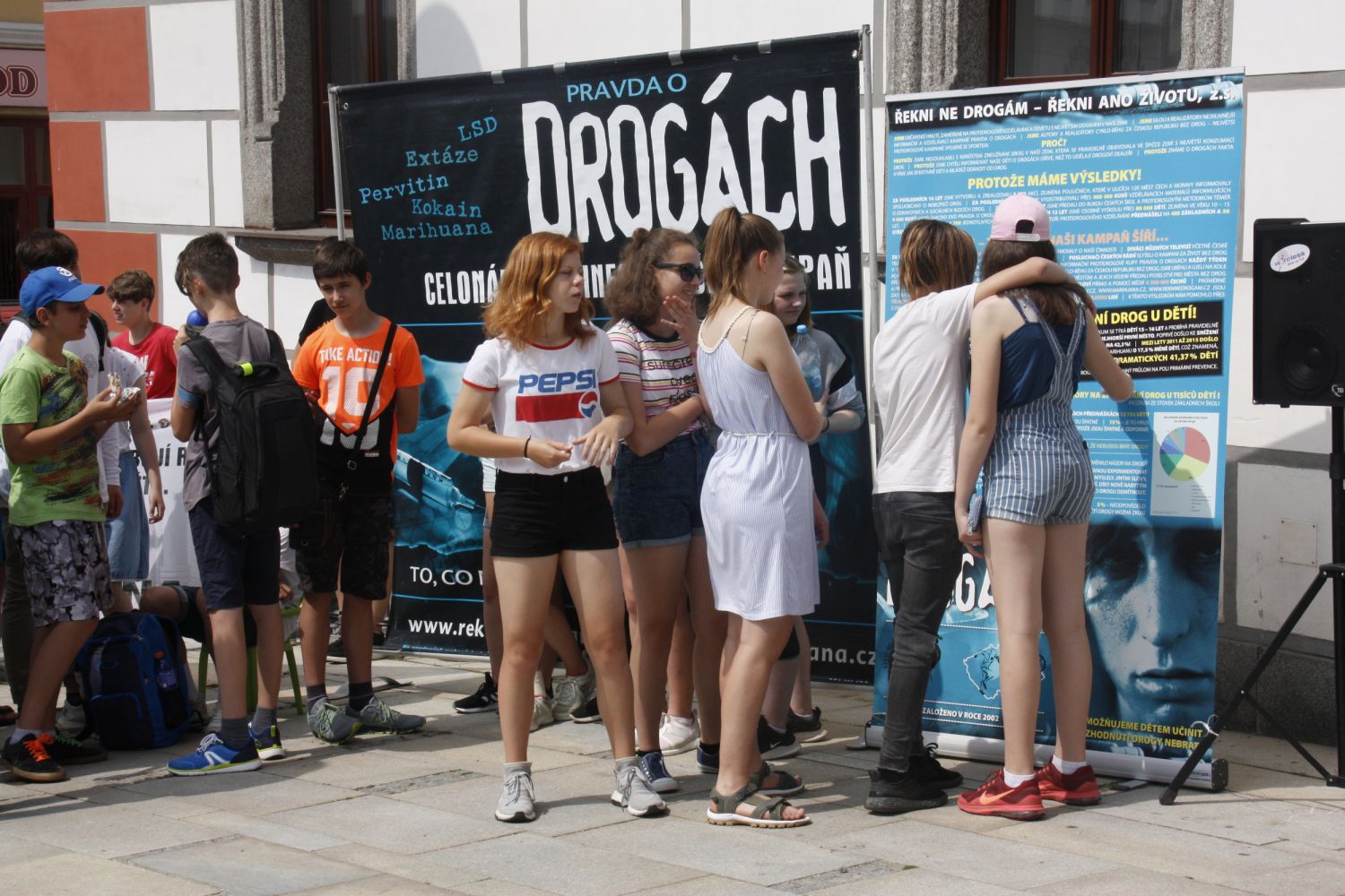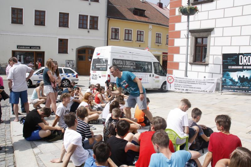 Pro žáky druhého stupně Základní školy Oslavická byl připraven bezmála hodinový program, který se odehrál přímo před radnicí. Zkušený lektor protidrogového vzdělávání vystoupil s přednáškou s názvem Pravda o drogách.