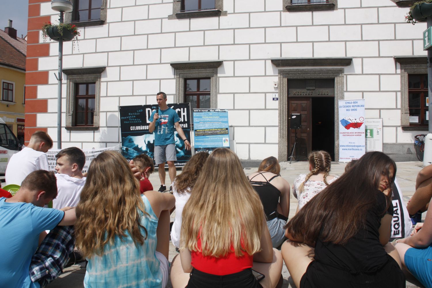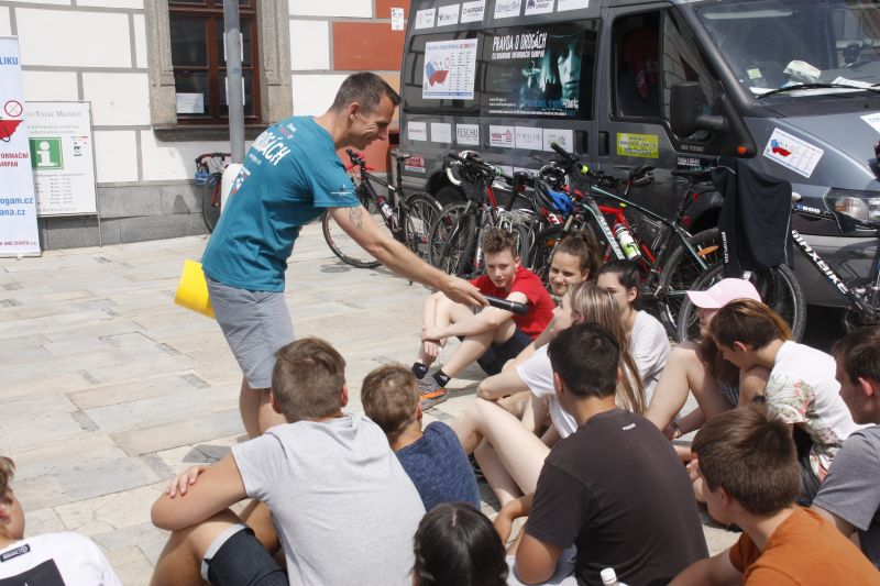 CYKLO-BĚH ZA ČESKOU REPUBLIKU BEZ DROG 2019 si udělal zastávku i ve Velkém Meziříčí
