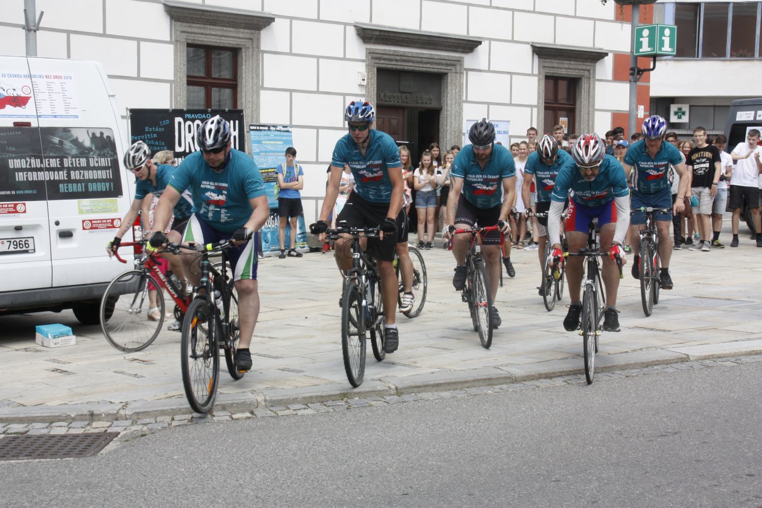 Krátce po dvanácté hodině vyjel peloton devíti cyklistů do Jihlavy, kde je čeká další zastávka v rámci preventivního programu.