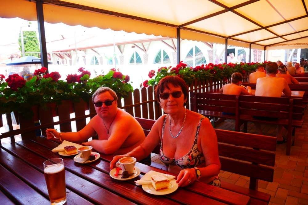 Jako již tradičně jejich cesta vedla do slovenského Velkého Medéru. Krásně teplá voda, prosluněná obloha a stále se zvyšující počet natěšených návštěvníků, je utvrdilo v tom, že jejich plán byl správný. Dopoledne zvládli mnoho vodních atrakcí a odpoledne si už převážně užívali plavání a relaxace v mnoha bazénech, které termální koupaliště nabízí. V tom letošním velkém horku nepohrdli ani plaveckým bazénem, který obvykle všechny odradí svěžestí vody. Teplota vzduchu dosahující 37°C všechny přiváděla ke stánkům s chladivou zmrzlinou. Zvýšená aktivita ve vodě byla však třeba kompenzovat i chutným obědem spojeným s chvilkou ve stínu. Na nějaké větší poležení a odpočinek si našli čas jen ti méně vytrvalí plaváčci.