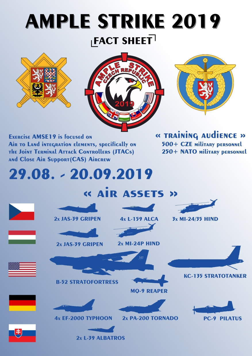 Mezinárodní cvičení Ample Strike bude probíhat konkrétně od 29. srpna do 20. září 2019, a kromě České republiky se ho zúčastní dalších pět zahraničních armád aliančních zemí.