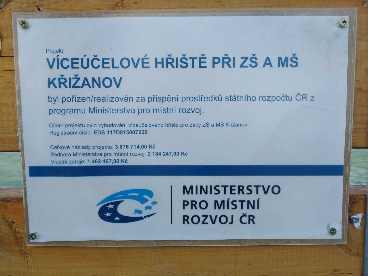 V Křižanově vzniklo nové víceúčelové hřiště, které slouží primárně žákům, ale v určeném čase i široké veřejnosti. Víceúčelové hřiště při Základní škole a mateřské škole Křižanov je zaměřeno na míčové hry. V současnosti lze hrát basketbal a fotbal, ale v brzké době bude možné provozovat i sporty jako je třeba nohejbal nebo volejbal.
