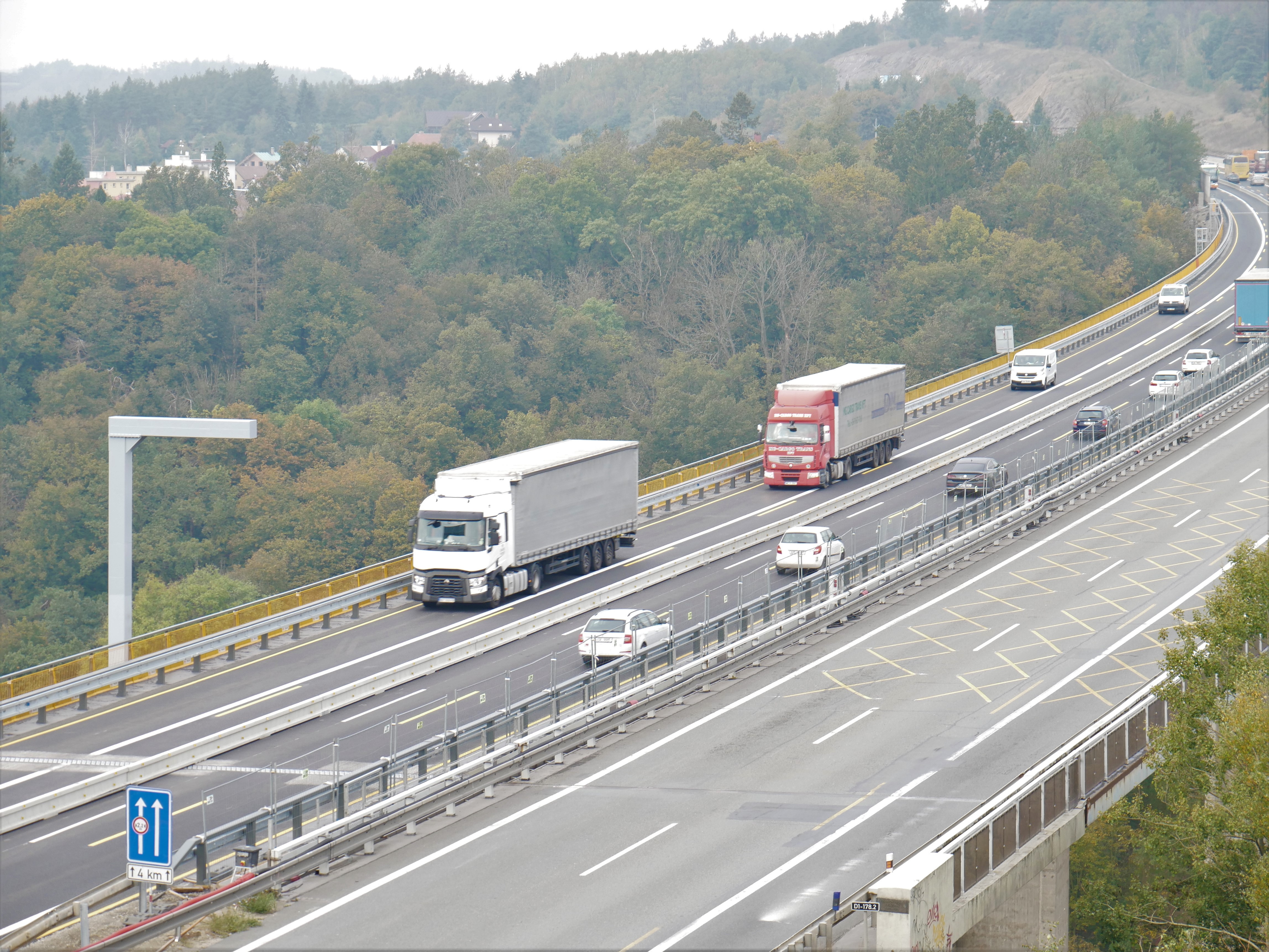 Všichni řidiči na dálnici D1 už jezdí po pravé části mostu Vysočina