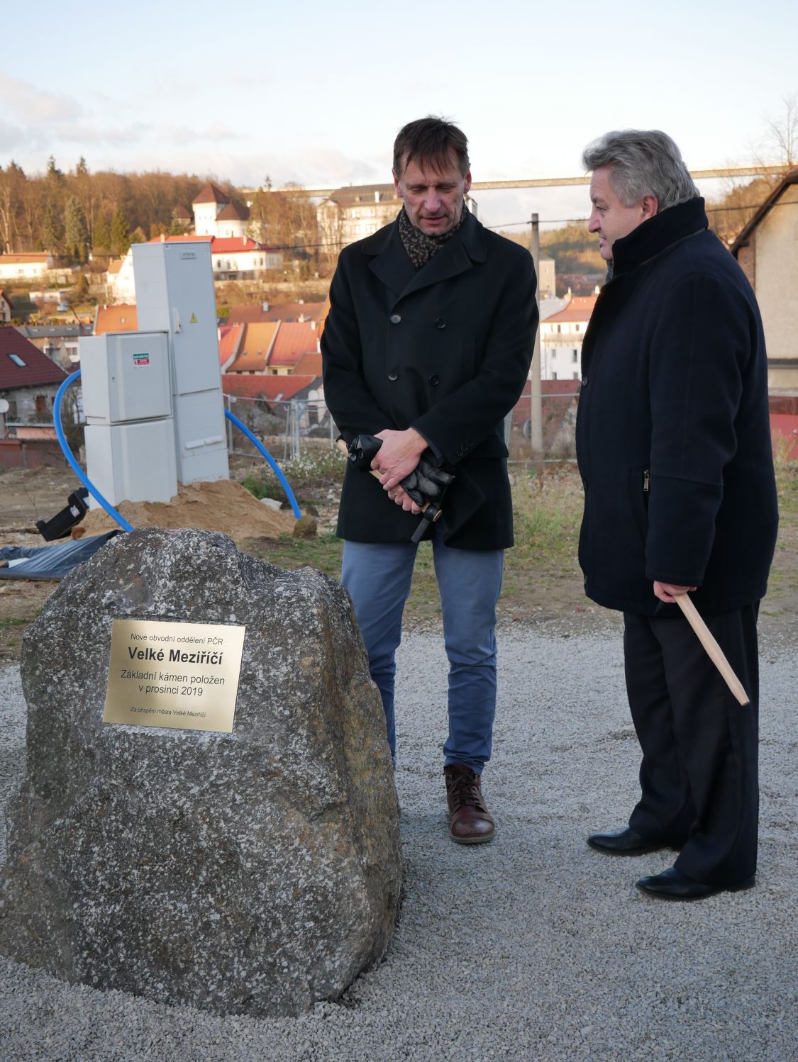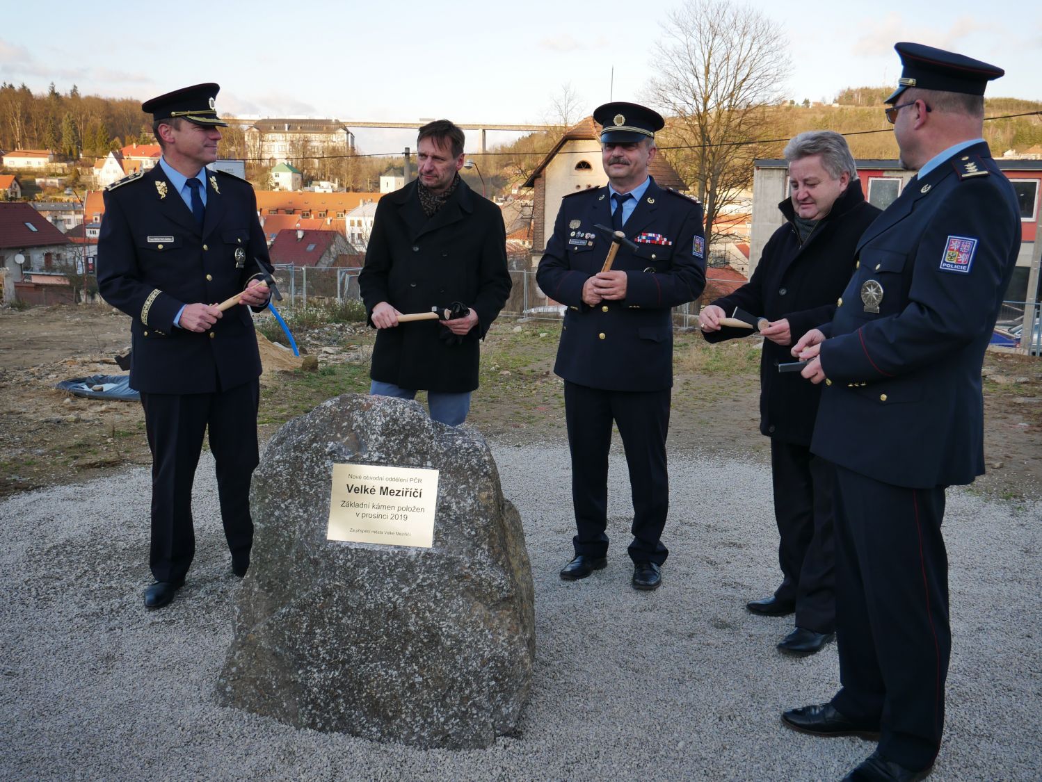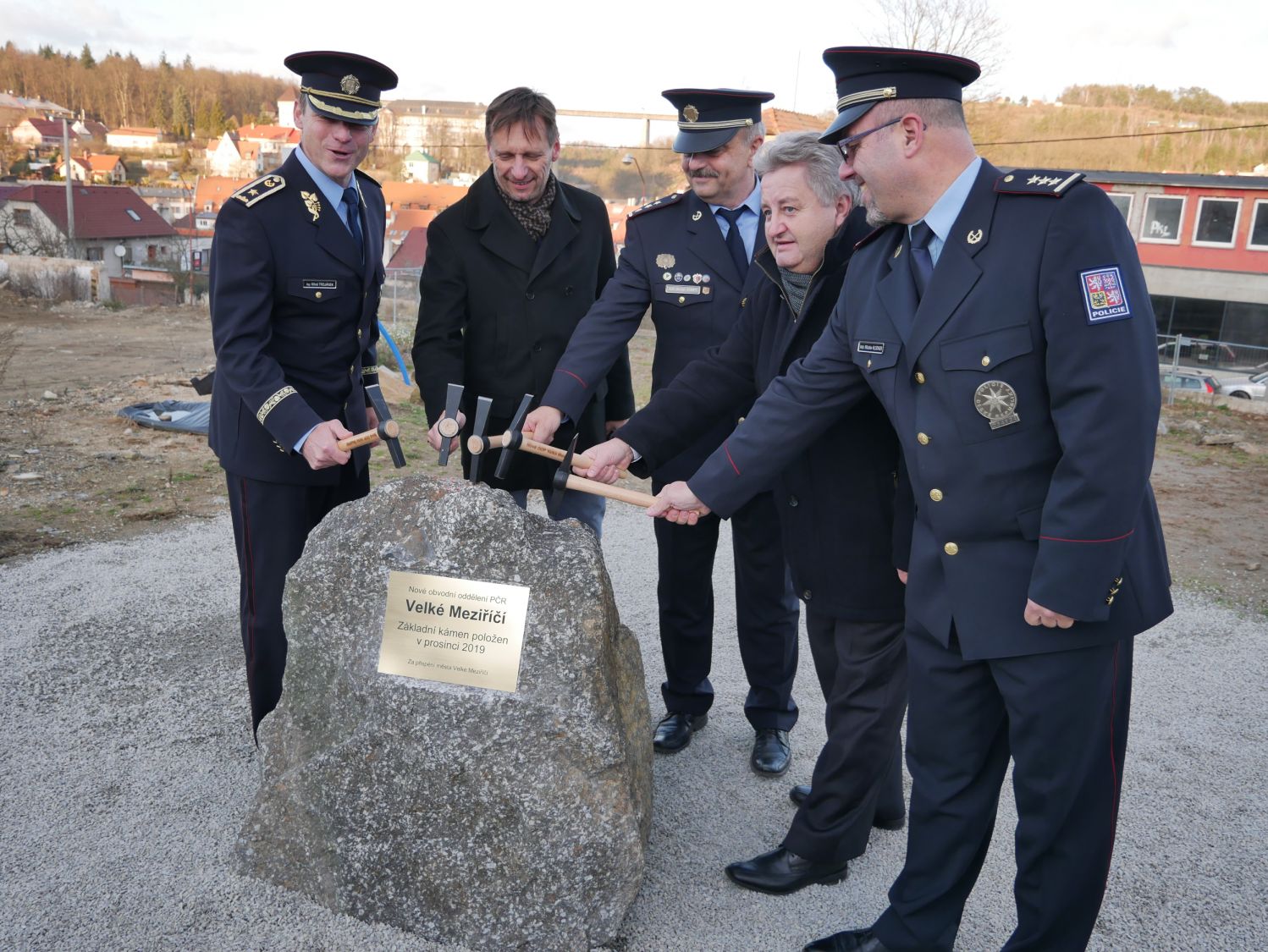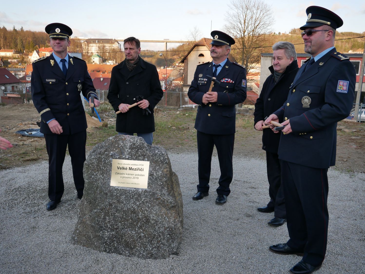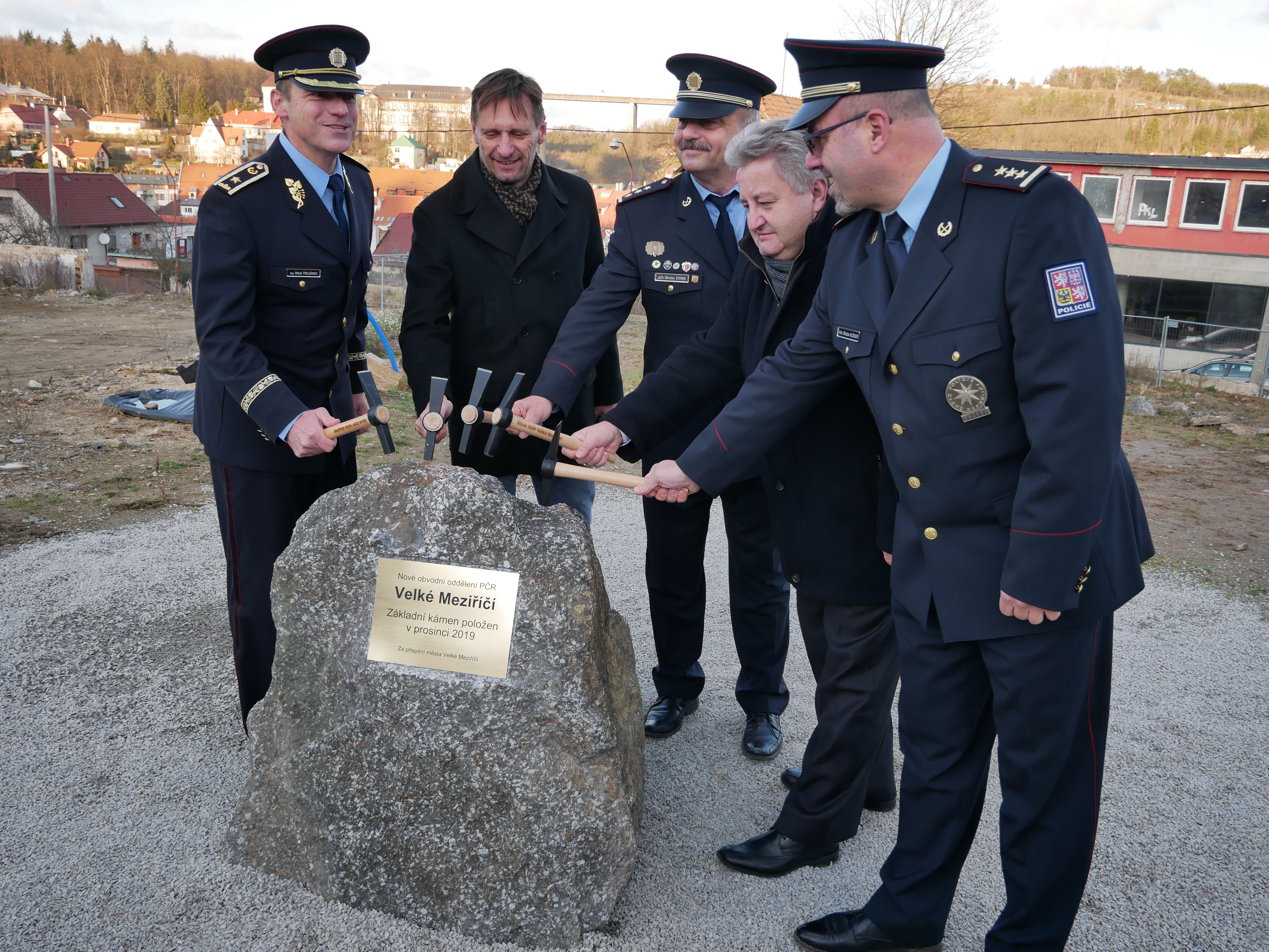 Slavnostního poklepání základního kamene výstavby nového obvodního oddělení PČR ve Velkém Meziříčí se v úterý 10. prosince odpoledne ujali ředitel Krajského ředitelství policie kraje Vysočina brig. gen. Mgr. Miloš Trojánek, plk. RNDr. Miloslav Klodner, náměstek ředitele pro ekonomiku, plk. JUDr. Miroslav Stárek, vedoucí územního odboru Žďár nad Sázavou, starosta Velkého Meziříčí Josef Komínek a Ing. Miroslav Štola, jednatel společnosti Gremis, která na základě výsledků výběrového řízení bude zhotovitelem akce.