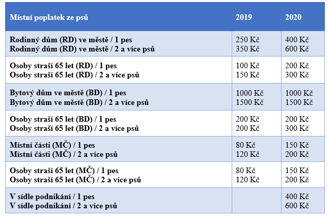 Připlatí si majitelé psů žijící v domě, důchodci i lidé v místních částech. Naopak se zvýšení poplatku nedotkne občanů, kteří žijí se svým psím miláčkem v bytě. Podle nového sazebníku zaplatí majitel za prvního psa v rodinném domě místo 250 korun čtyři sta, za každého dalšího psa 600 korun, tedy o 250 korun více. V bytových domech zůstává cena stejná, za prvního psa zaplatí 1 000 korun, za každého dalšího psa 1 500 korun.