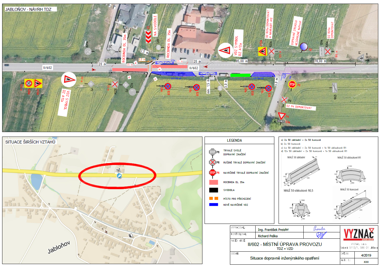 Při výjezdu z vedlejší na hlavní komunikaci nahradí stávající značení dopravní značka „Stůj, dej přednost v jízdě" a na protilehlé straně hlavní komunikace dojde k osazení nezámrzného zrcadla.
