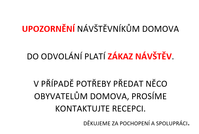 Do odvolání platí zákaz návštěv. Pokud budete chtít něco předat obyvatelům domova, kontaktujte recepci.
