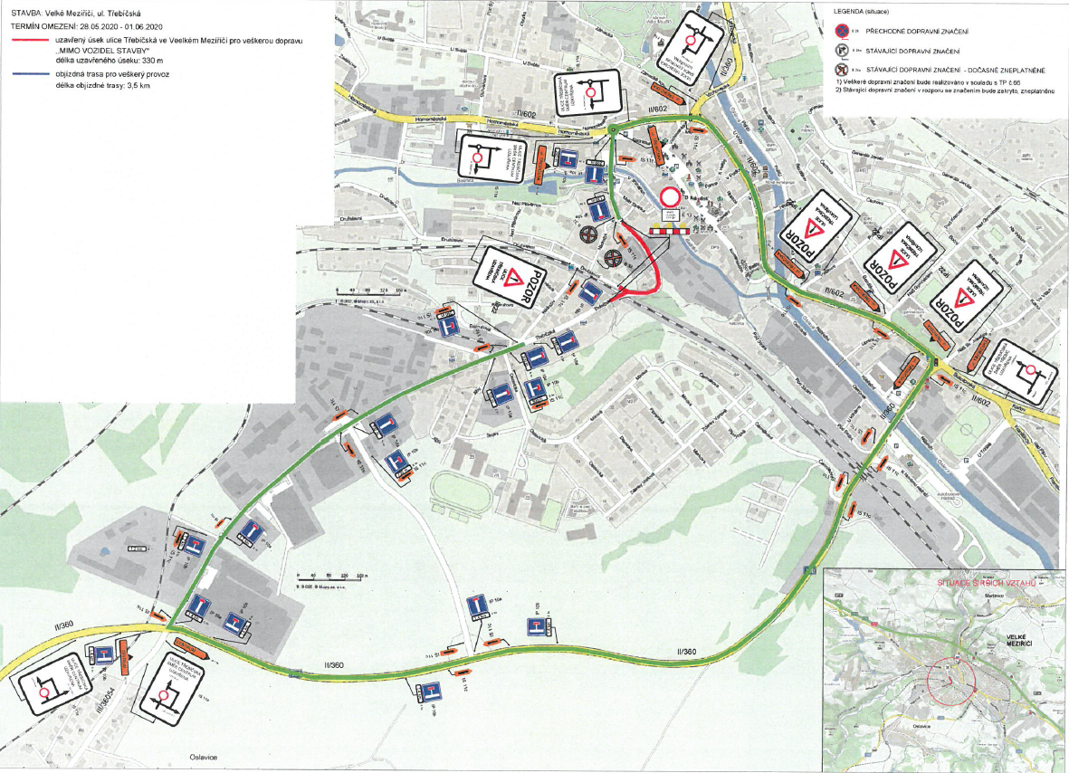 V rámci uvedení ulice Třebíčská do původního stavu před vybudováním přeložky dojde ke krátké uzavírce, která potrvá od čtvrtka 28. května do pondělí 1. června 2020. Uzavírka začne u odbočky na ulici Nádražní a povede až nad železniční most, což znamená znemožnění odbočení na ulici Družstevní.