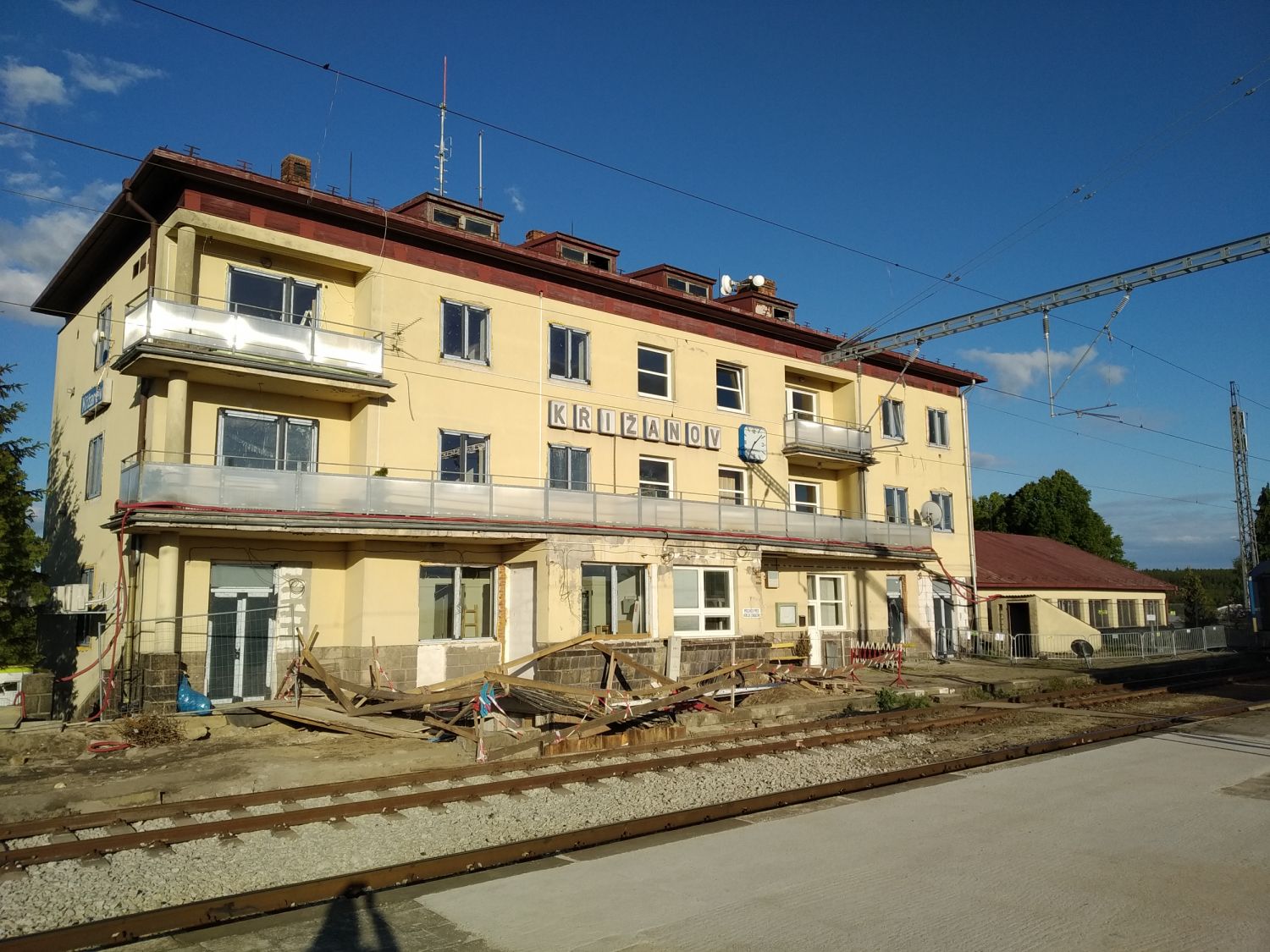Správa železniční dopravní cesty (SŽDC)rekonstruuje výpravní budovu v Křižanově i ve Skleném nad Oslavou a traťový úsek mezi nimi.
