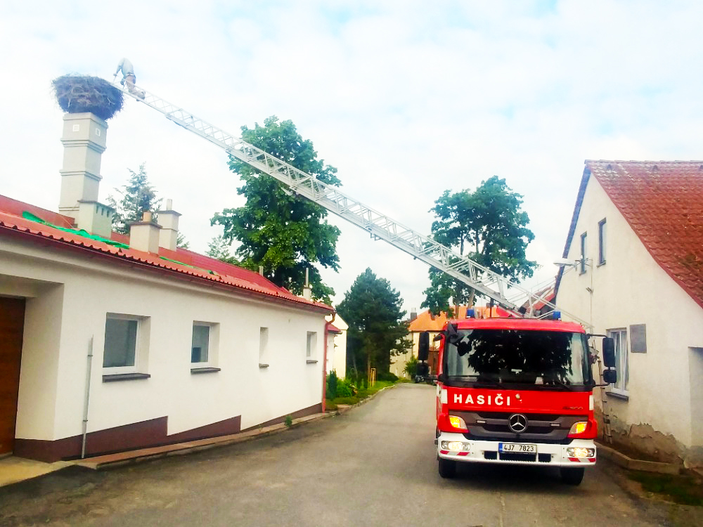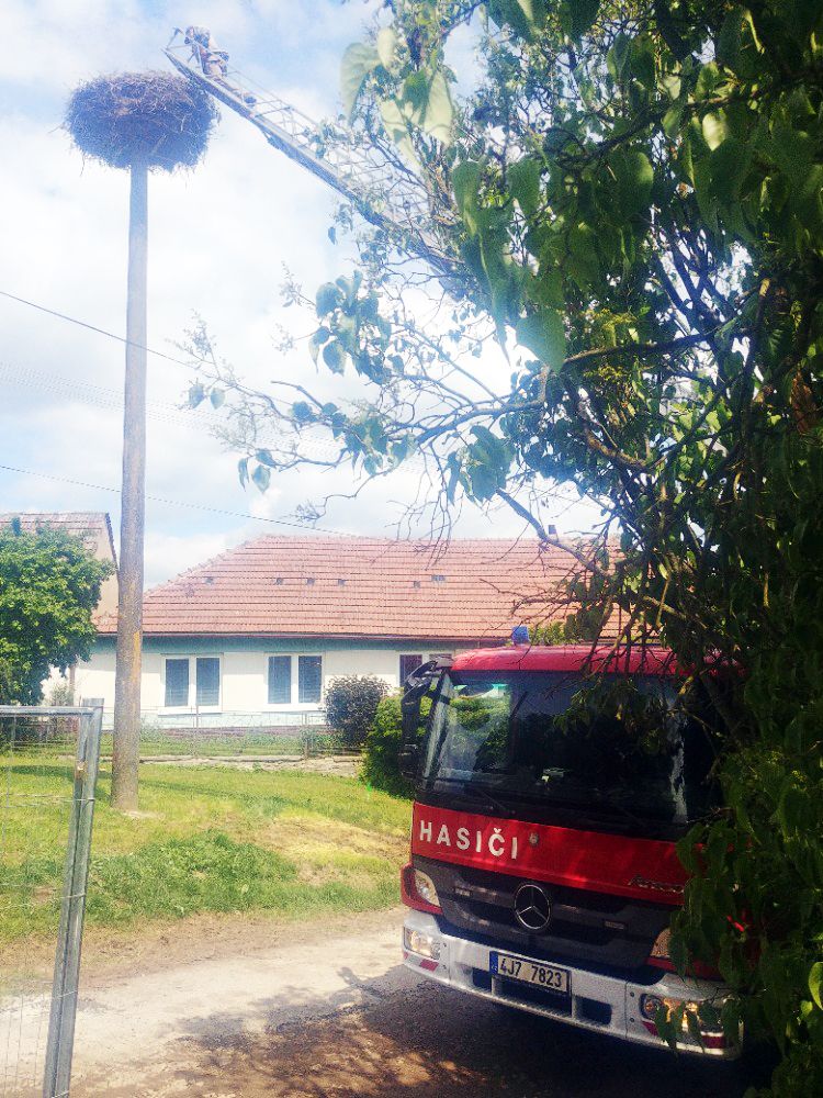 V pondělí 15. června se na kroužkování čápů z okolí Velkého Meziříčí podíleli i velkomeziříčtí profesionální hasiči.