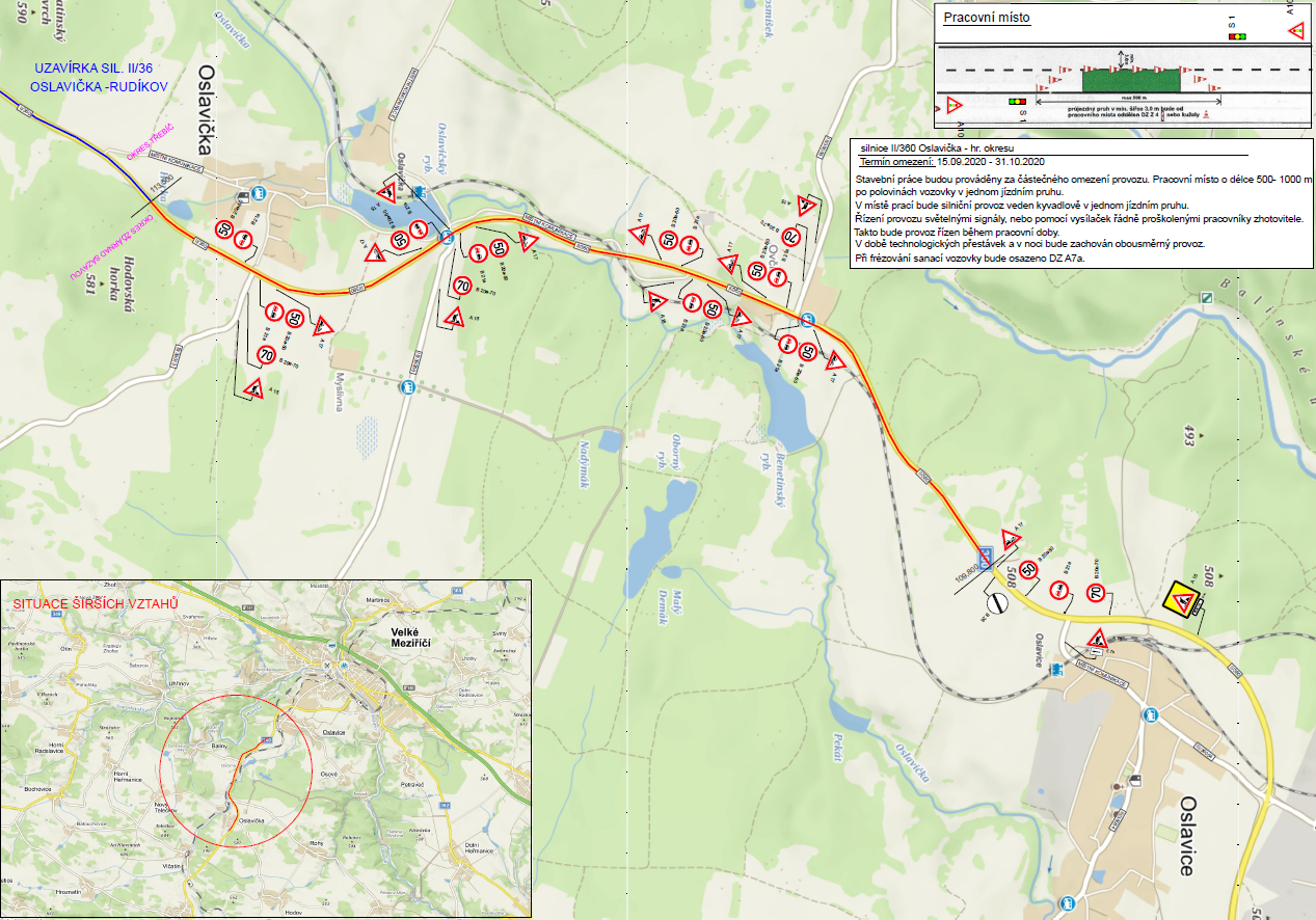 Odbočku na Baliny, Rohy, Oslavičku, i Hodov protne dopravní omezení, hlavní silnice číslo II/360 se ještě v čase stavby mostu u Rudíkova opraví. Během prací bude dopravu řídit kyvadlově semafor nebo řádně proškolený pracovník. V noci a v době technologických přestávek zachová zhotovitel obousměrný provoz. Stavební práce proběhnou od úterý 15. září do soboty 31. října.