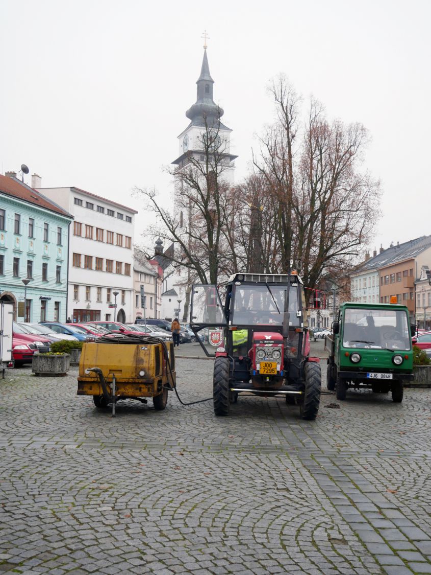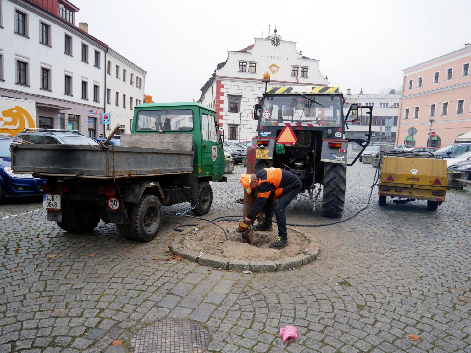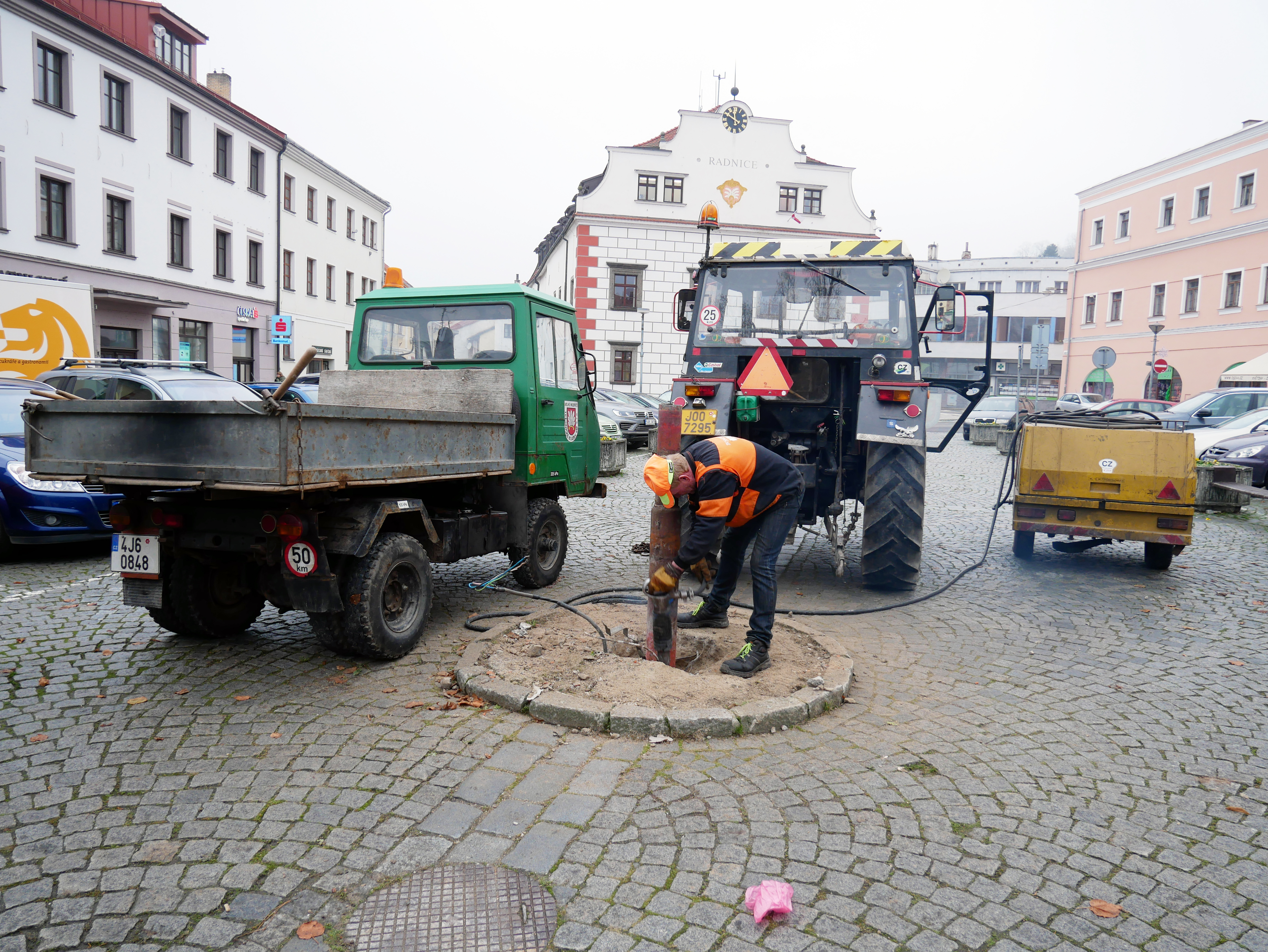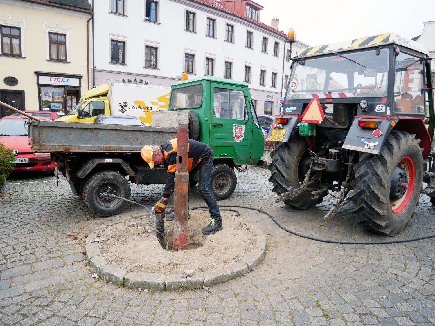 Ve středu náměstí odstranily technické služby sloup veřejného osvětlení, jeho zásadním problémem byla narušená statika. Nový sloup s vyhovující elektroinstalací osadí pracovníci v brzké době na původní místo, splňovat má i požadavky pro připojení dřevěných stánků. Ty má radnice v plánu využívat v příštím roce při organizaci trhů a dalších kulturních akcí.
