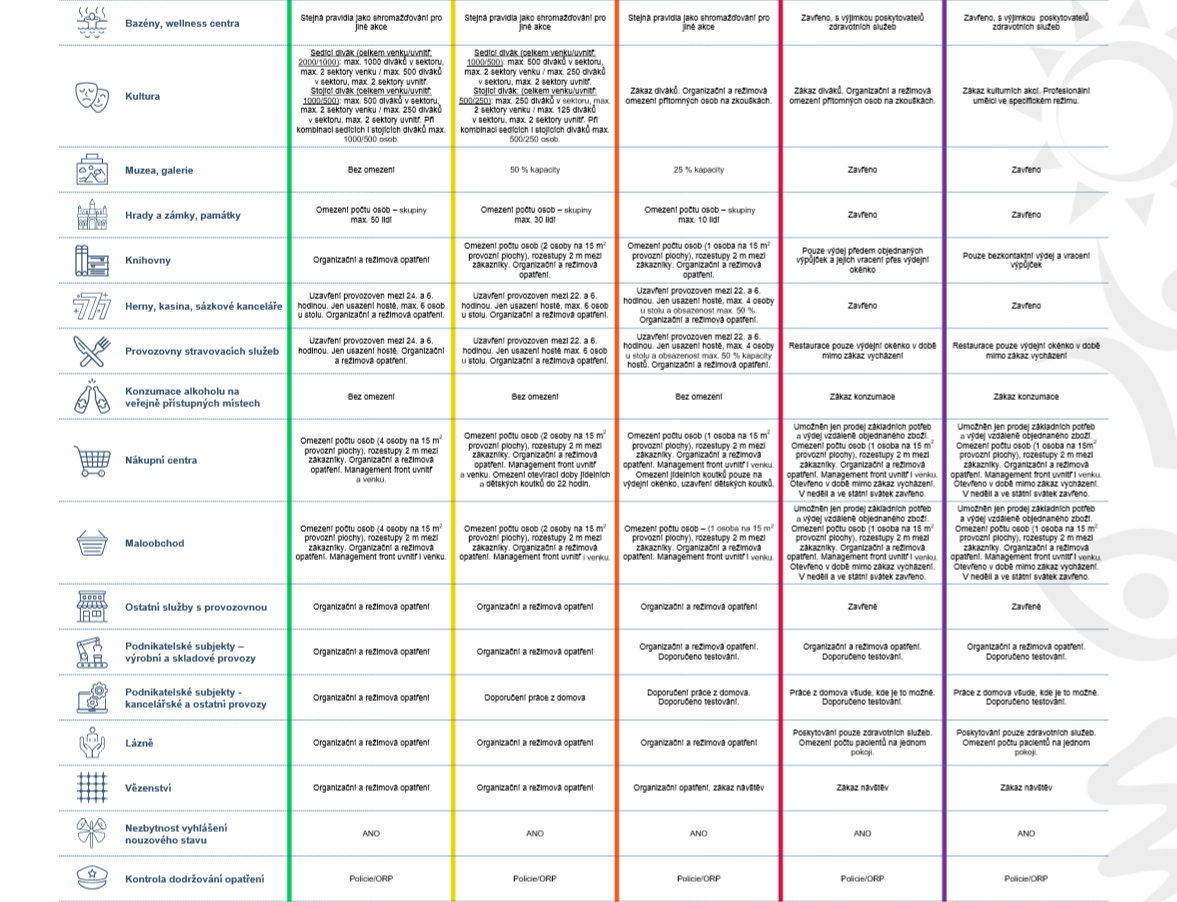 Povoleno tak je venku i uvnitř shromažďování až šesti lidí namísto dosavadních dvou, zákaz vycházení začíná od 23:00 místo současných 21:00. Do 23:00 se může prodloužit také otevírací doba obchodů a výdejních okének restaurací, nadále je ale zakázáno pití alkoholu na veřejně přístupných místech.