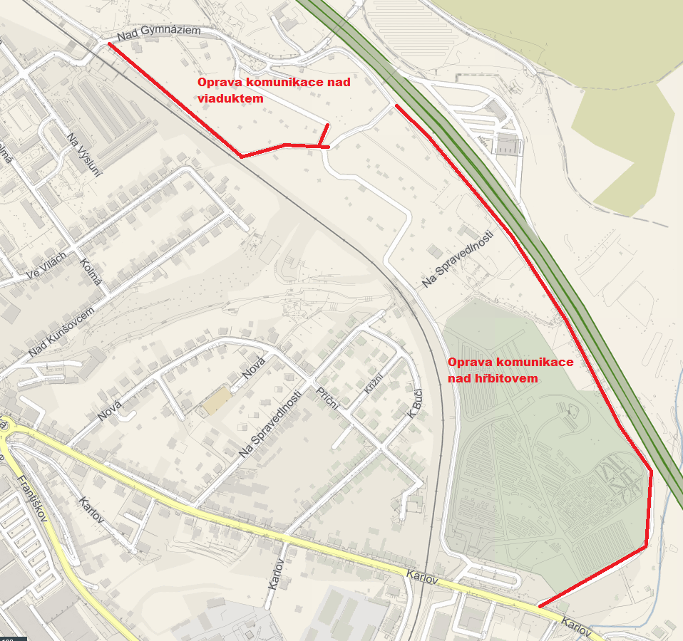 Opravy silnic nad viaduktem a hřbitovem proběhnou v příštím roce