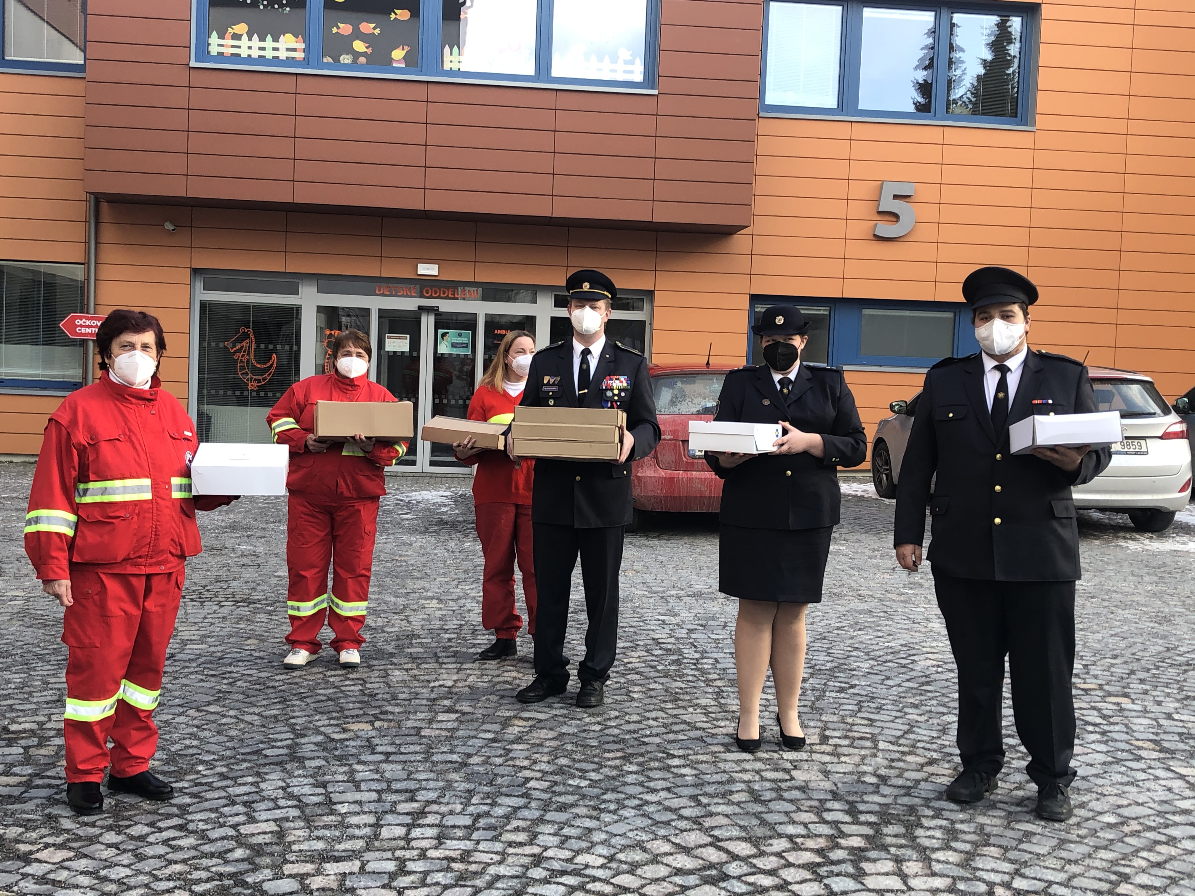 Dobrovolní pekaři nakonec připravili balíčky se slaným a sladkým závinem, kávou nebo čajem a tabulkou čokolády. Kromě štrůdlů to byly i dorty, svatební koláčky a bábovky. Celkem z Velké Bíteše a Velkého Meziříčí dobrovolní hasiči a zástupci Českého červeného kříže přivezli 10 krabic plných dobrot. Radost udělali zdravotníkům z celého interního oddělení, neurologie, gynekologicko-porodnického oddělení, dětského oddělení a na Urgentním příjmu.