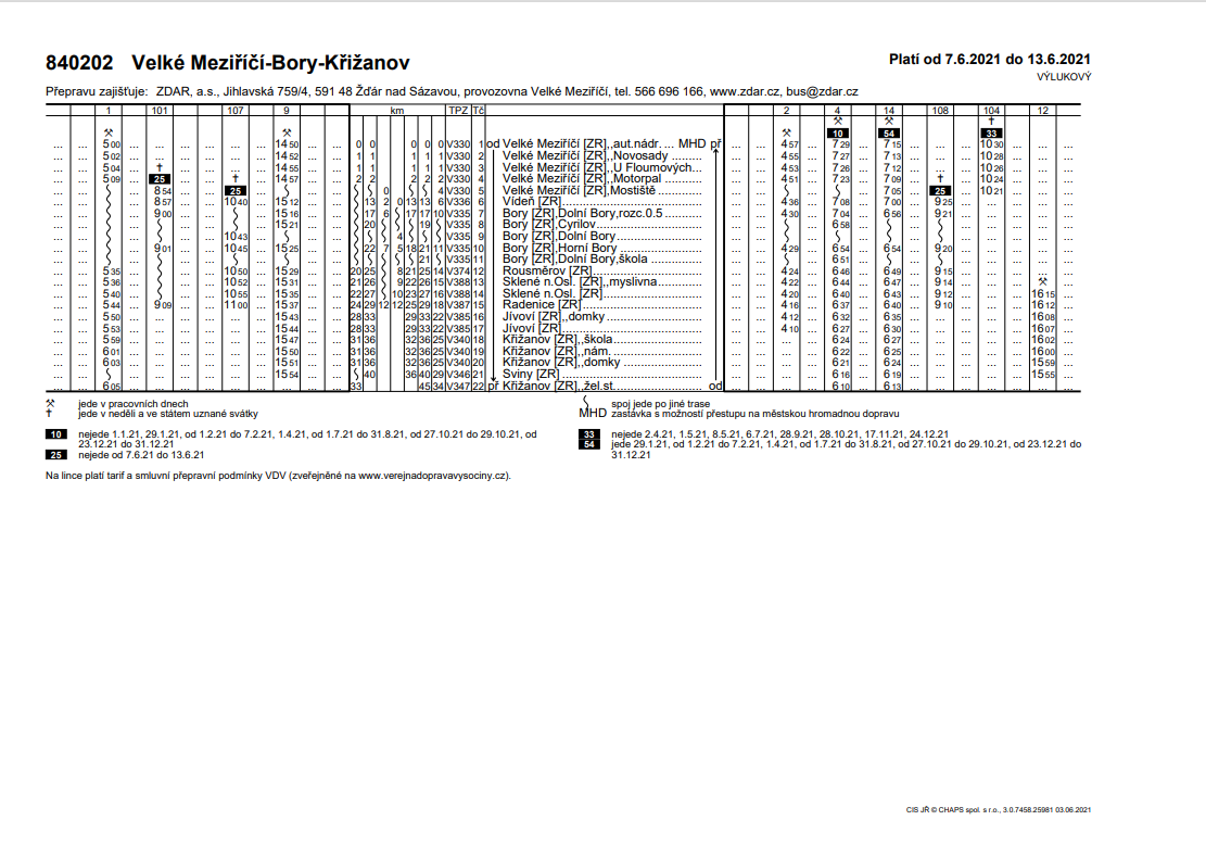 - Velké Meziříčí – Radostín nad Oslavou – Žďár nad Sázavou