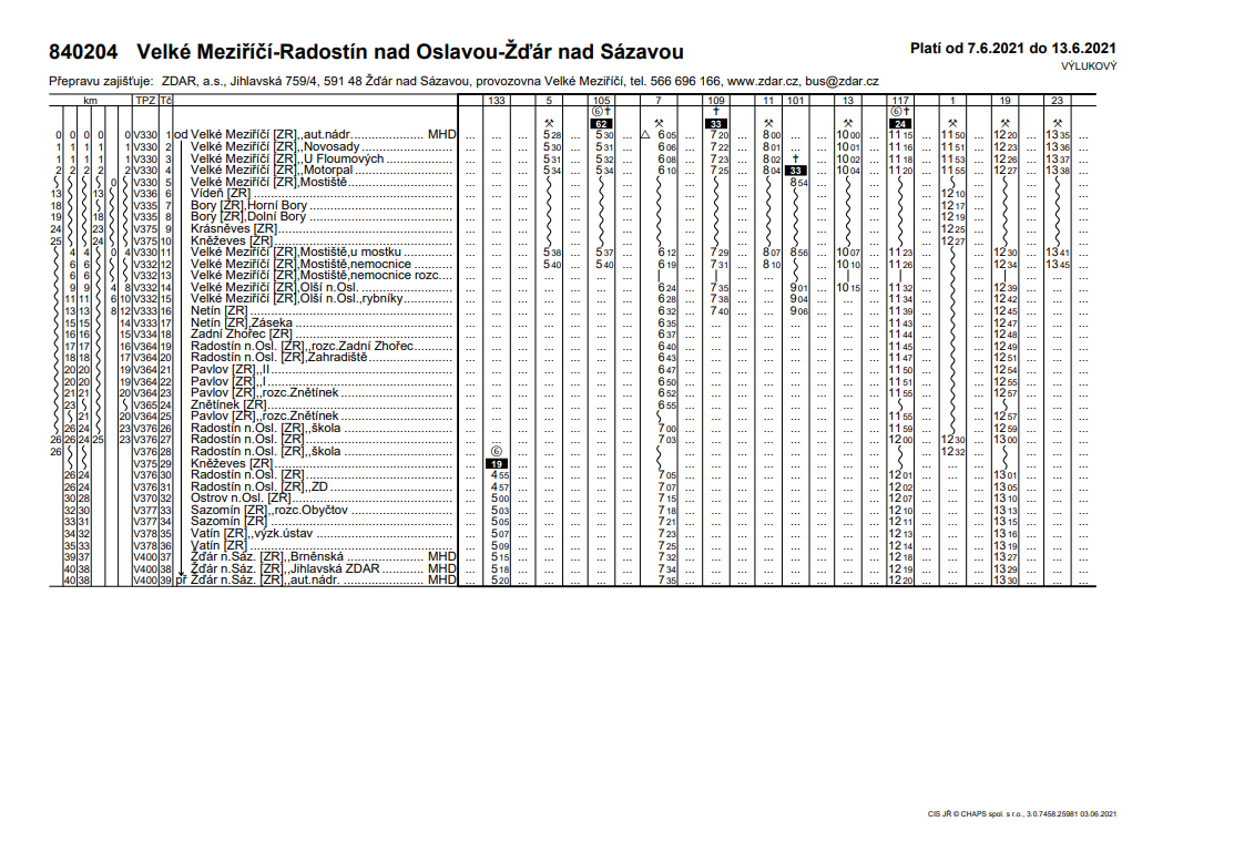 Od pondělí 7. června do neděle 13. června přichází v platnost výlukové jízdní řady na určitých trasách.