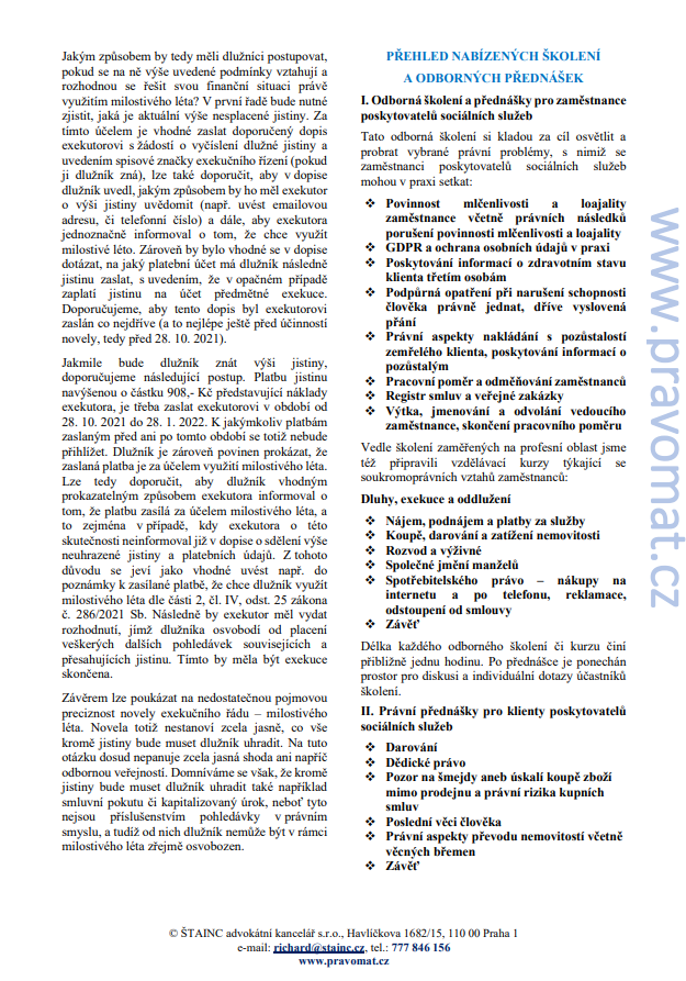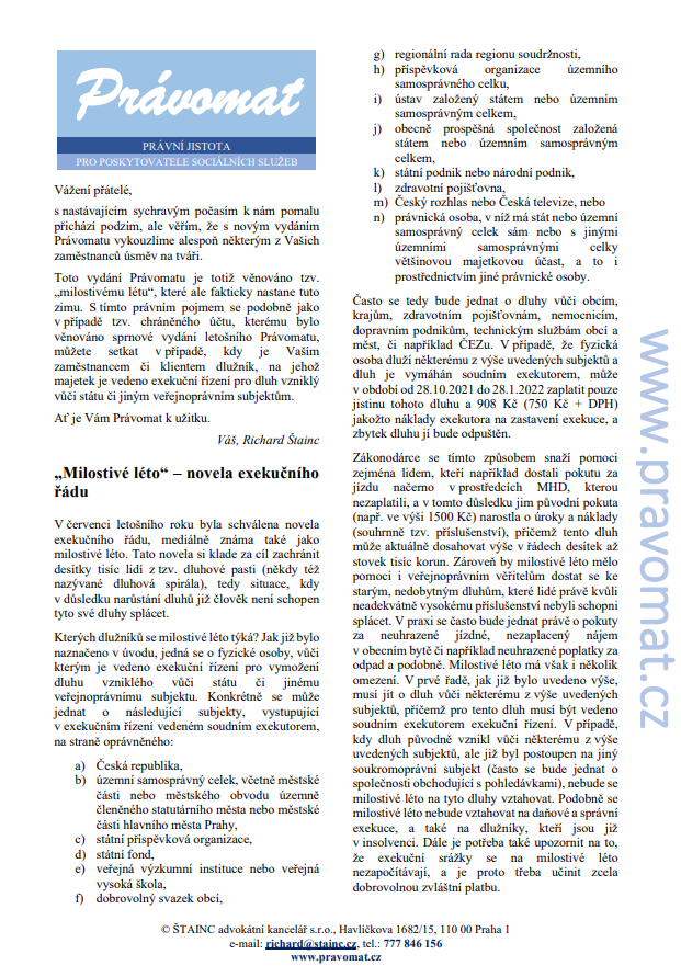 Město Velké Meziříčí si dovoluje informovat své dlužníky, fyzické osoby, jejichž dluh se vymáhá prostřednictvím soudního exekutora, o možnosti využití novely exekučního řádu, mediálně známé jako „milostivé léto". Opatření platí pro období od 28. října 2021 do 28. ledna 2022 a nabízí občanům mimořádnou příležitost vymanit se z dluhové pasti vůči státu nebo obci.