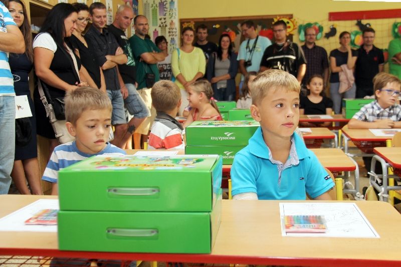 Základní škola Sokolovská uvítala 43 prvňáčků, Oslavická 51, Školní 49, Mostiště 17 a Lhotky 5. Prvňáčci dostávají od Kraje Vysočina dárek v podobě stavebnice Roto z Vysočiny, která jim poslouží v hodinách pracovní výchovy.