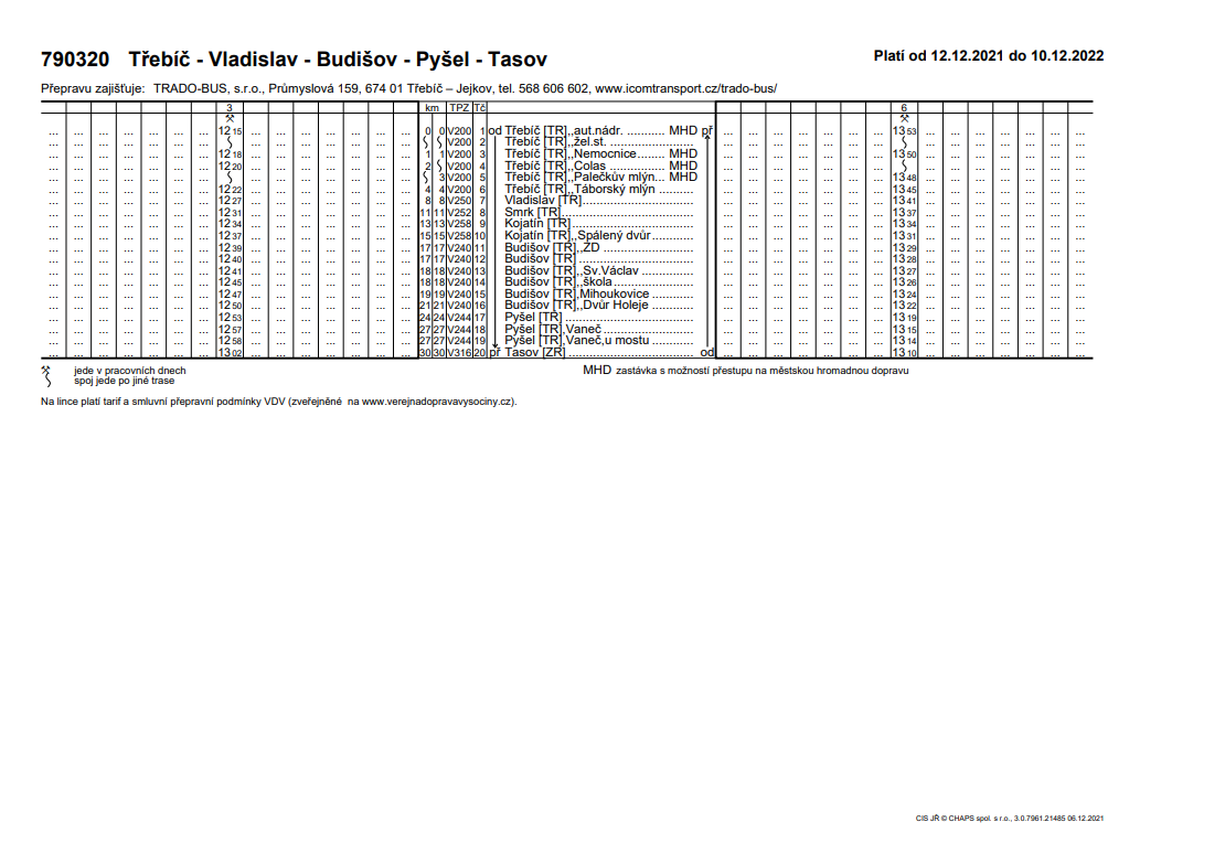 - Kožichovice - Třebíč - Budišov - Tasov - Velká Bíteš