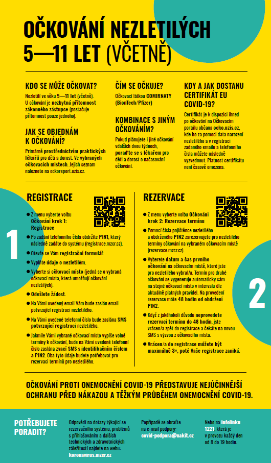 Ministerstvo zdravotnictví České republiky spustilo 13. prosince 2021 registraci k očkování dětí ve věku 5 až 11 let. Pediatři ve Velkém Meziříčí již registrují děti v uvedeném věku k očkování, které proběhne v půlce ledna. „Do 10. ledna můžete u mě, u kolegyně Ivety Kašové nebo u Lenky Dobešové zaregistrovat své děti a my vás poté pozveme na očkování k nám do ordinací," nabízí rodičům dětský lékař Libor Beneš. Nejlepší je lékaře kontaktovat telefonicky.