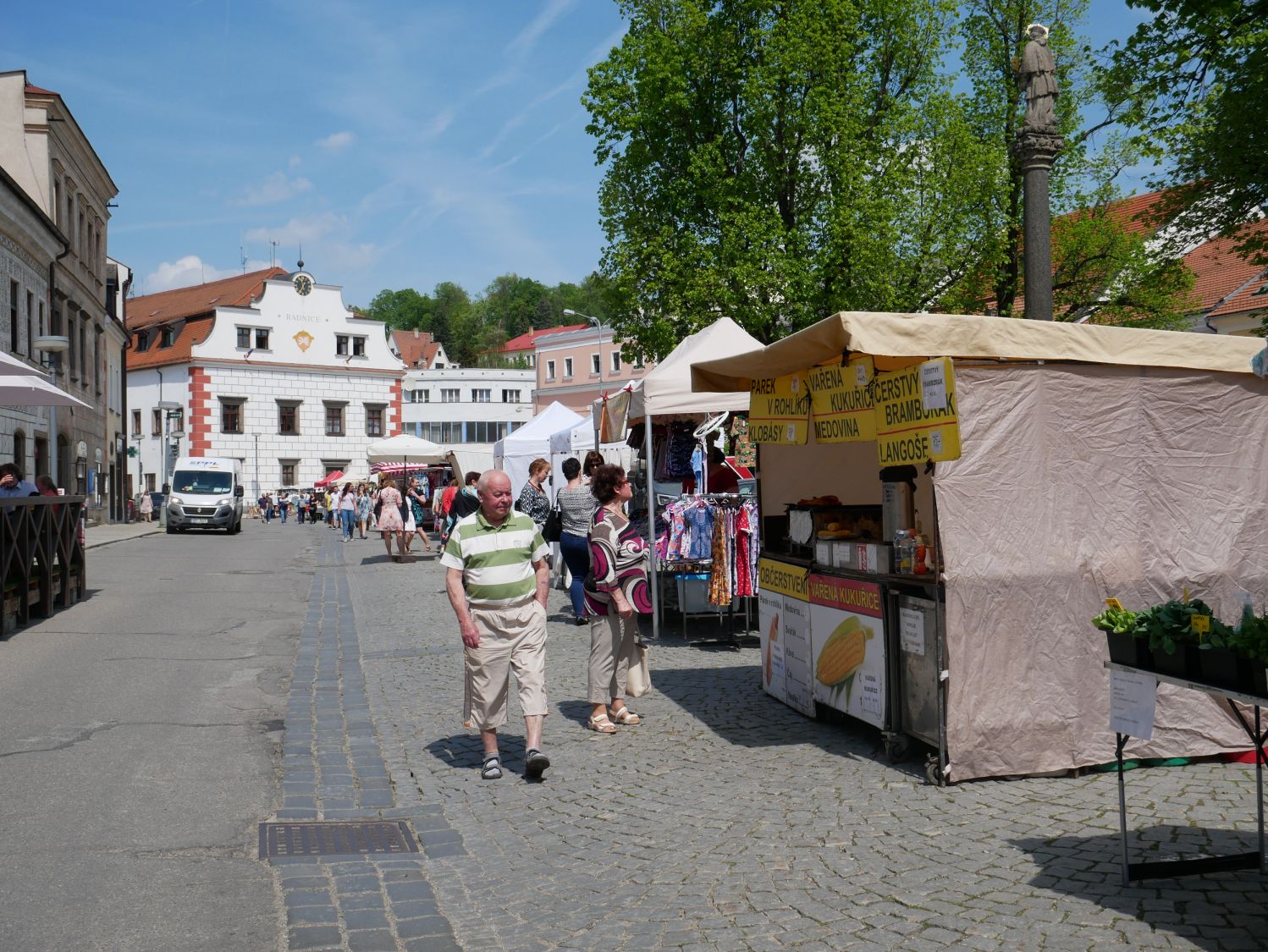 Trhovci s prodejními stánky zaplnili ve středu 11. května velkomeziříčské náměstí. Kolemjdoucí měli možnost zakoupit si řemeslné výrobky, cukrovinky, ovoce, zeleninu i květiny.