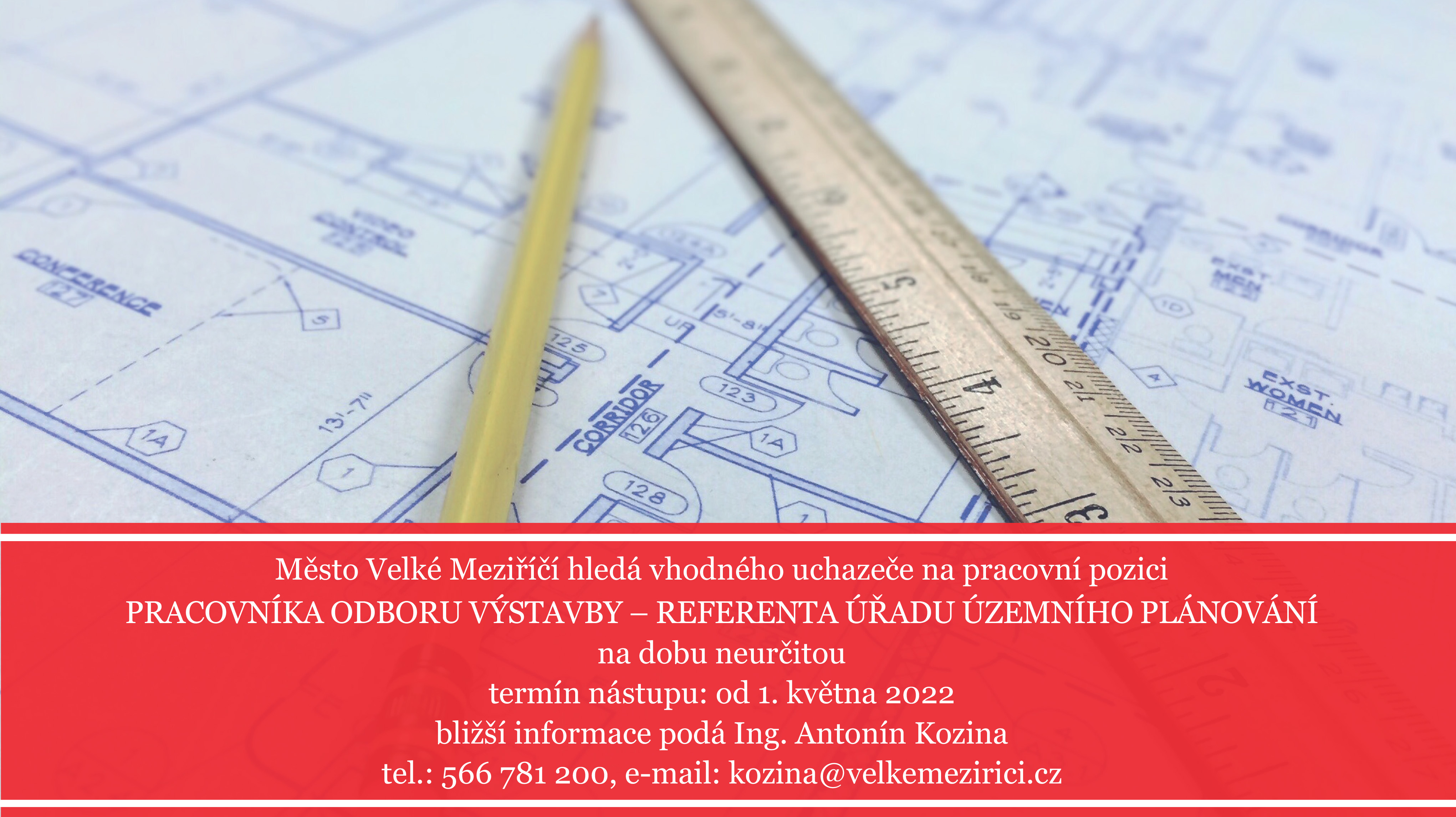 Tajemník Městského úřadu Velké Meziříčí vyhlašuje výběrové řízení na pracovníka odboru výstavby – referenta úřadu územního plánování.