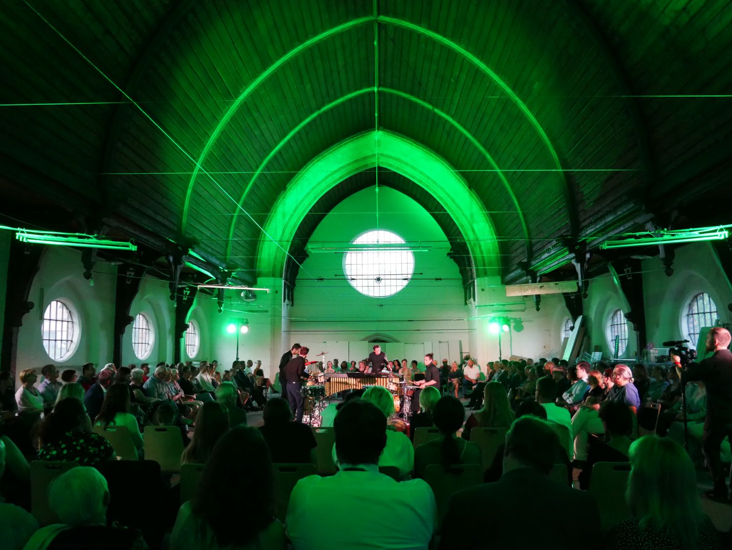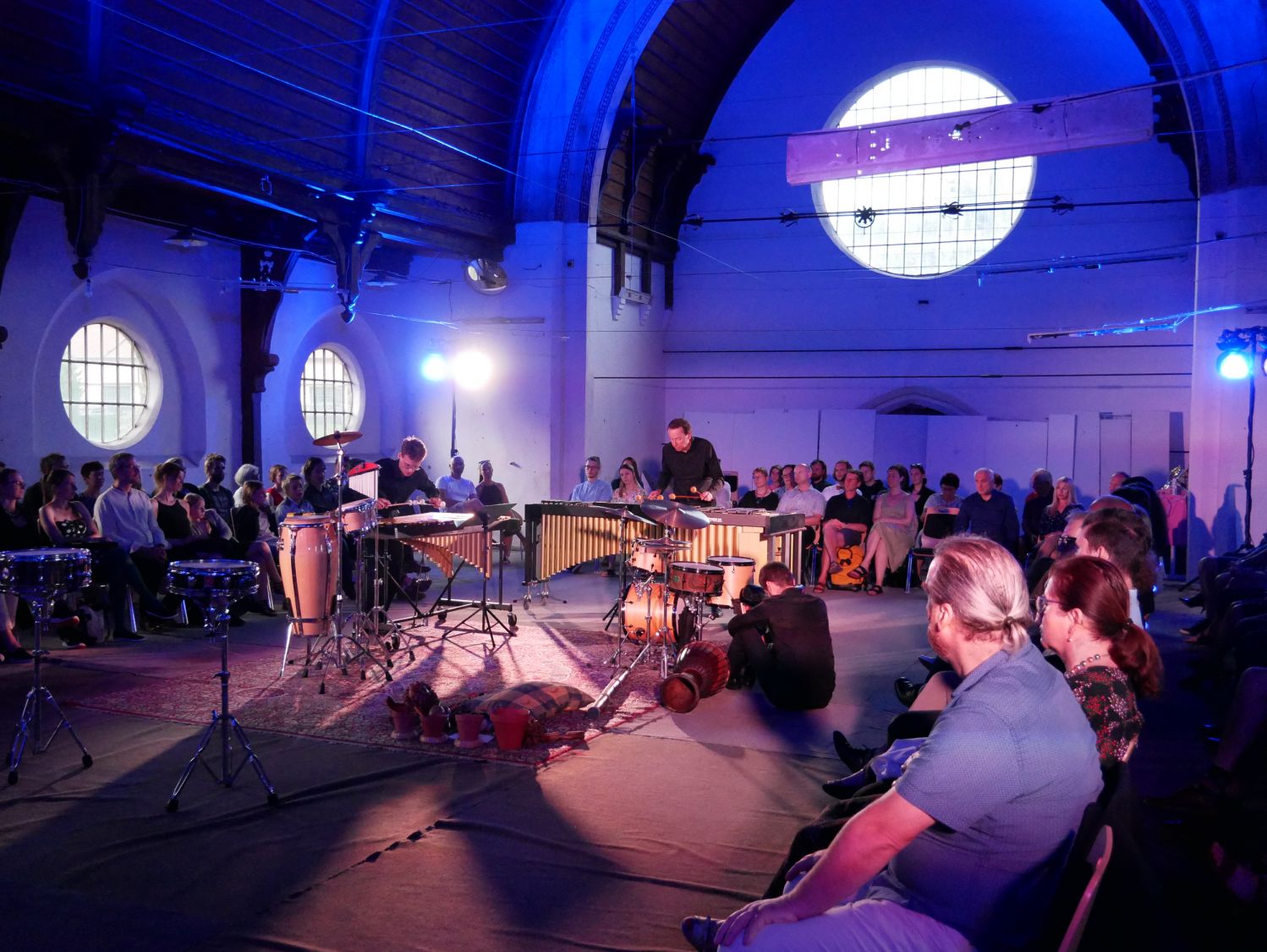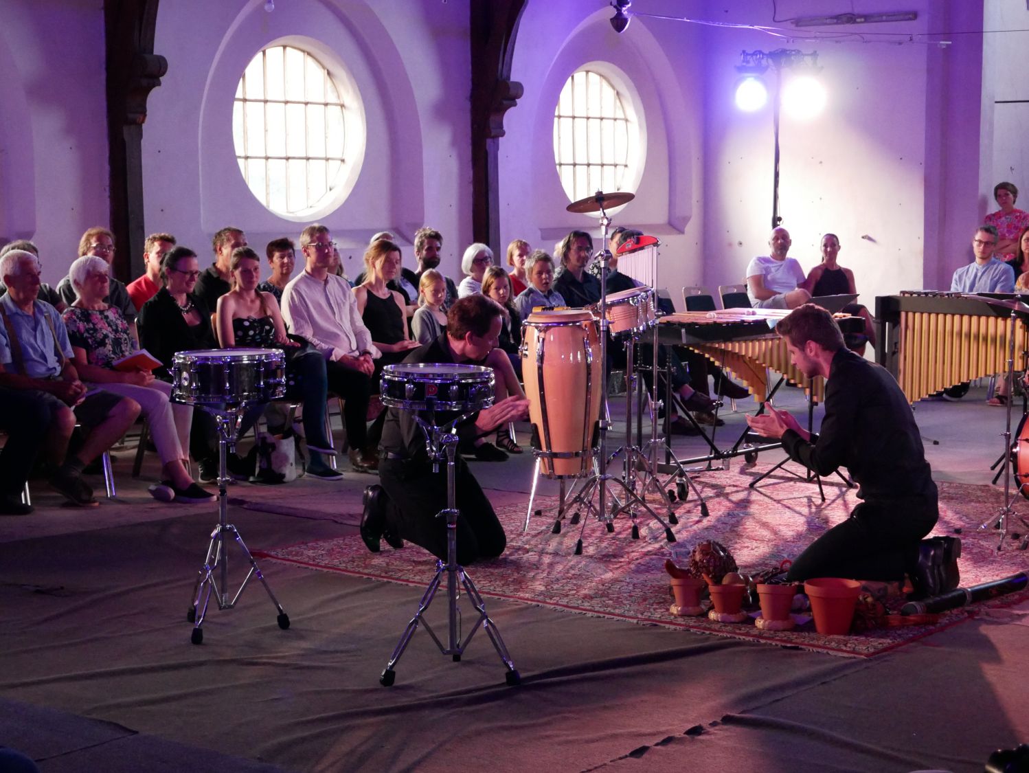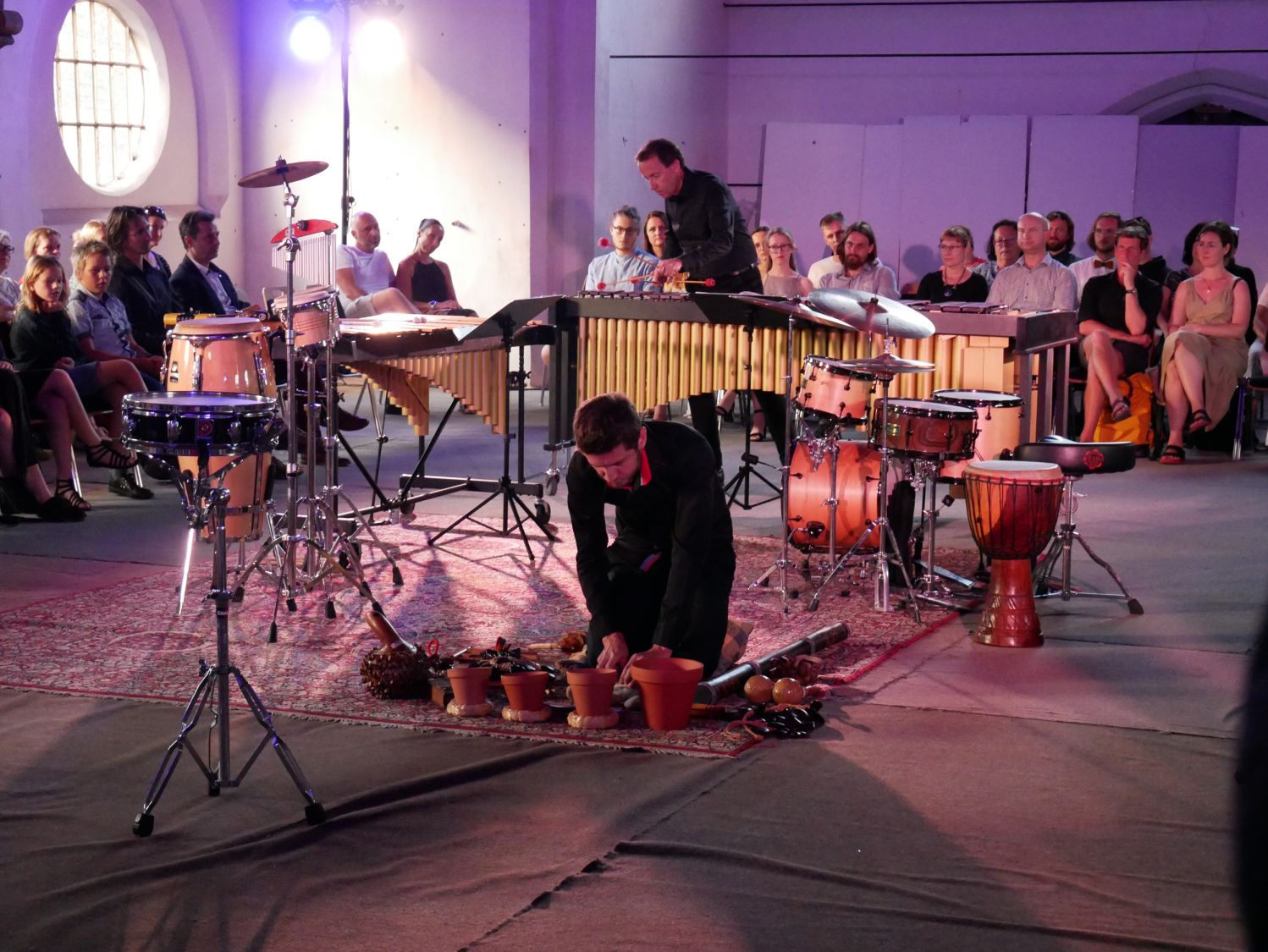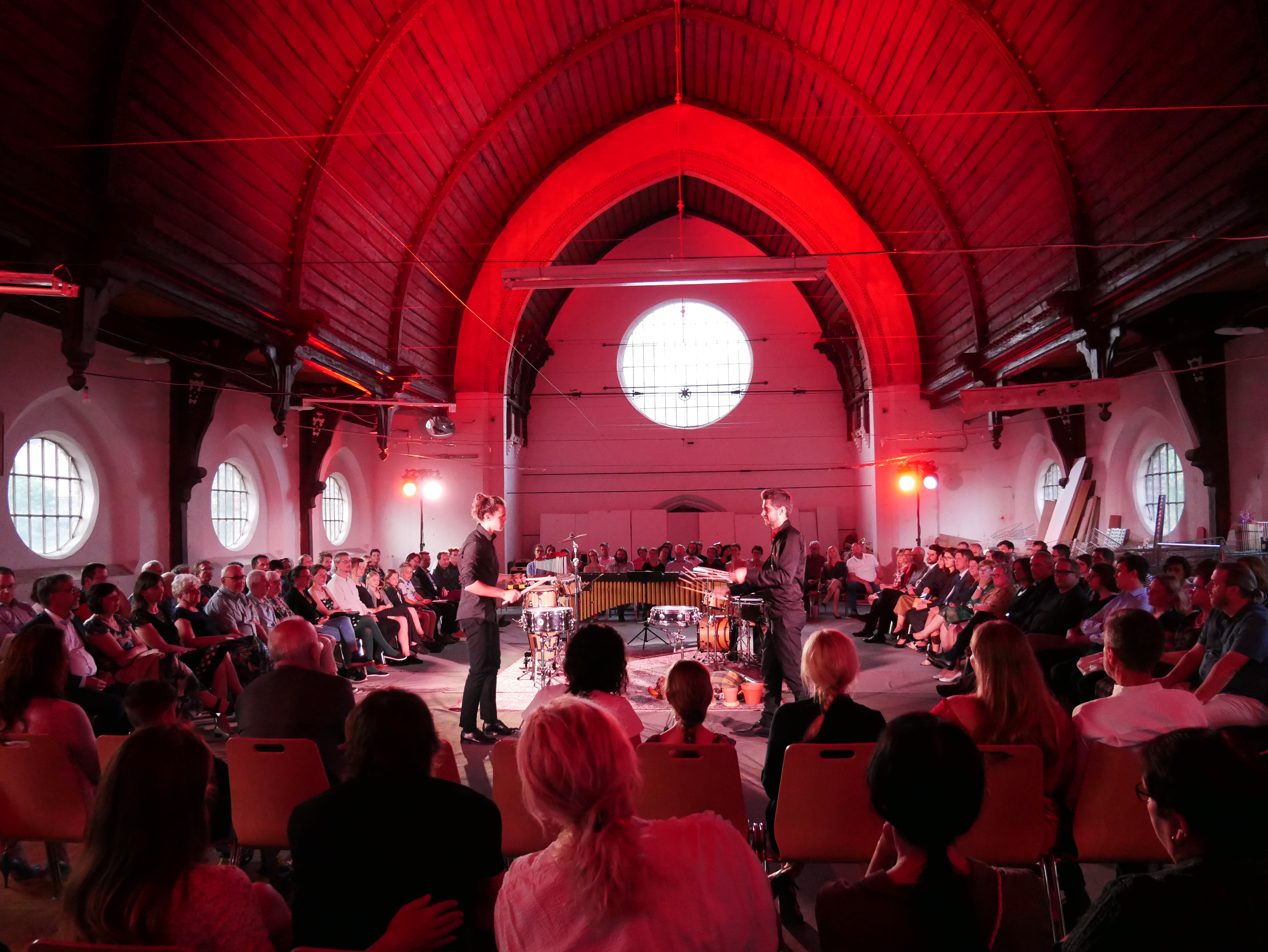 Na diskusi Z obchodního centra ke kulturní komunitě volně navázal koncert perkusionistů, Martina Opršála a Martina Kleibla, mezinárodně známými jako OK Percussion Duo. Ti přítomným posluchačům odehráli rytmický příběh Homo sapiens v jinak nepřístupných prostorách Nové synagogy. Hrou na melodické i nemelodické nástroje představili příběh, který se zrodil na úsvitu lidských dějin díky dvěma kamenům a zní dodnes. V samotném závěru vystoupení je doplnila dvojice žáků, právě vycházející hvězdy scény bicích nástrojů, Tomáš Javor a Kryštof Vašíček.